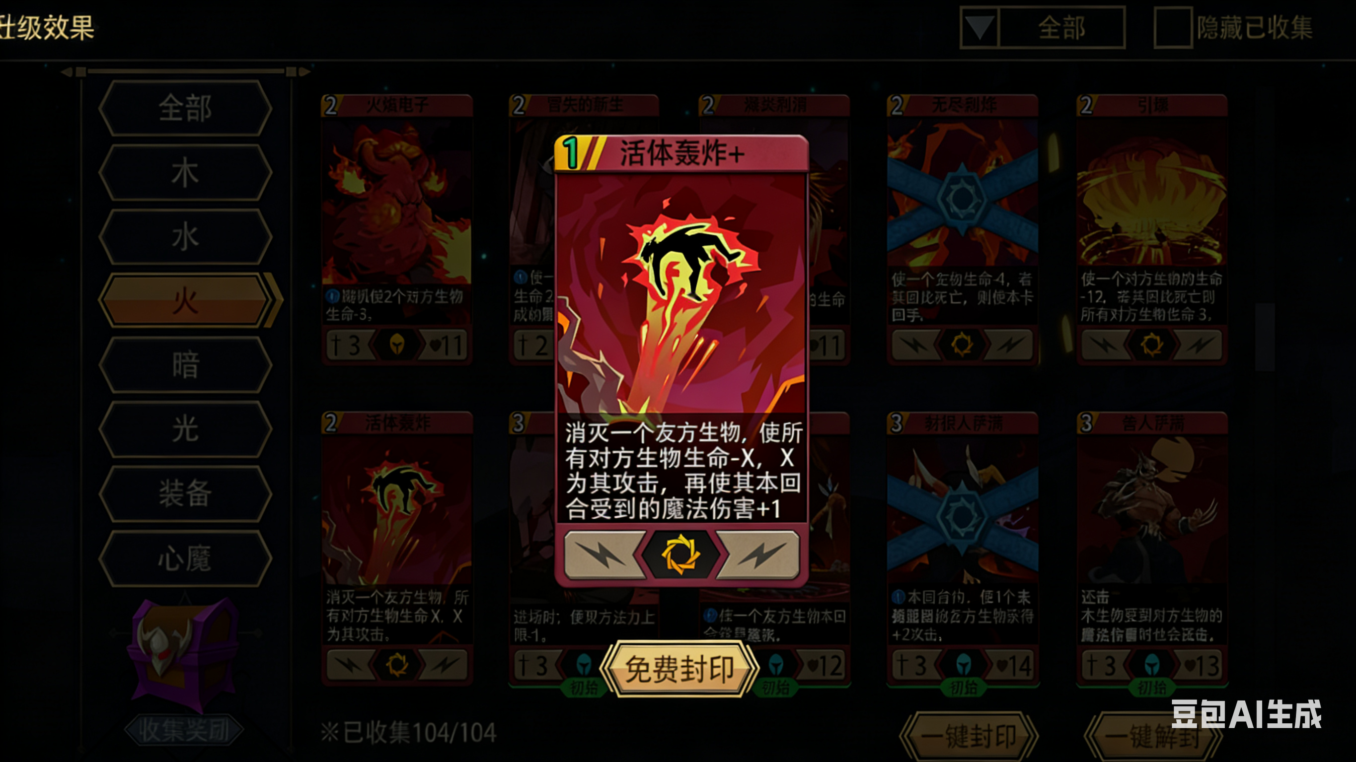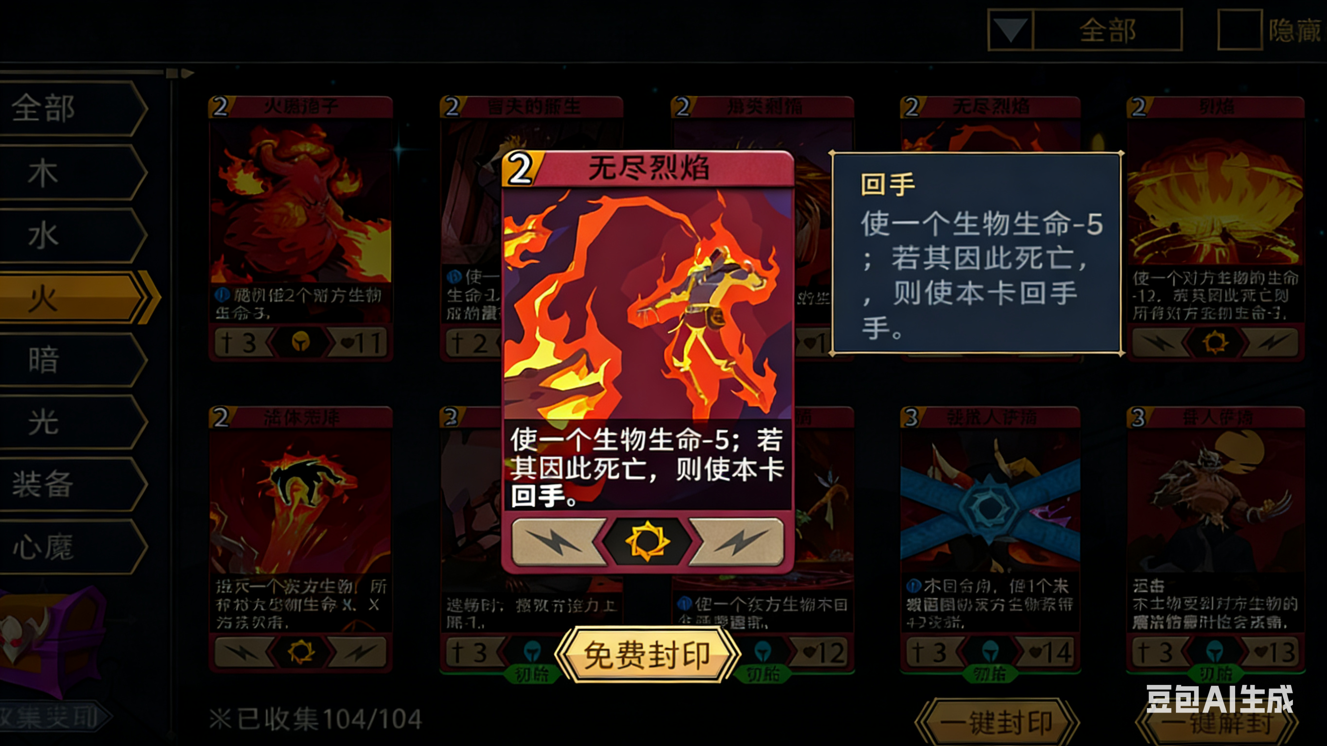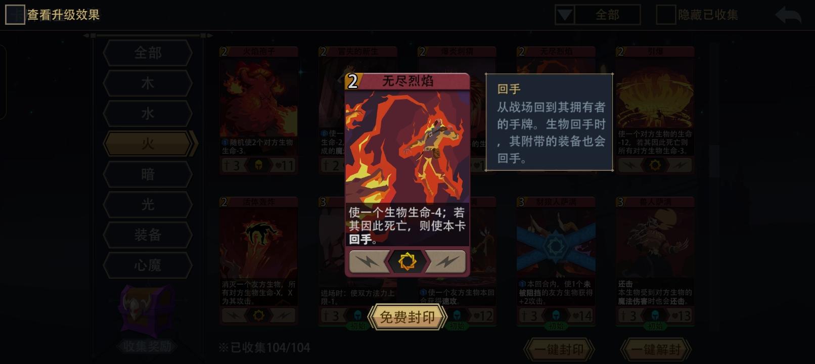无尽烈焰:使一个生物生命-5;若其因此死亡,则使本卡回手