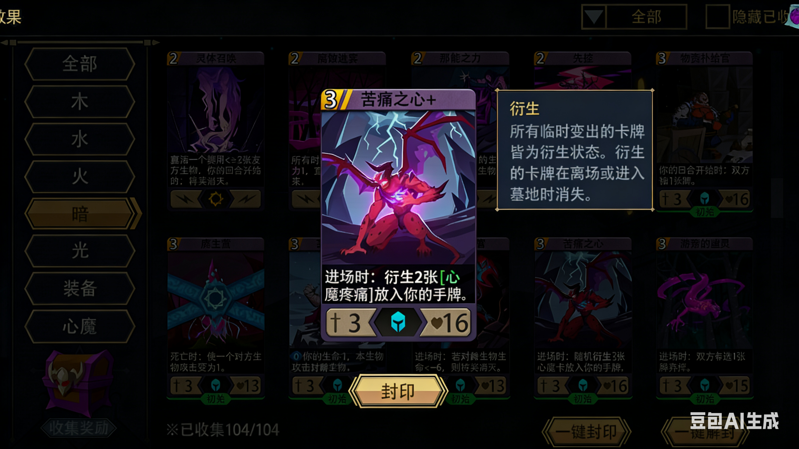 苦痛之心,3费16血3攻,进场时:衍生1张[心魔 ·疼痛 ]放入你的手牌