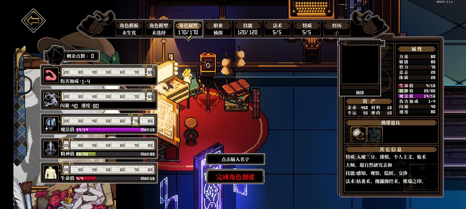 因为当前版本(前六个模组)没有相关特质所以开局直接拉满