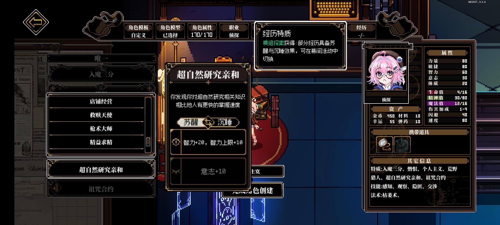 在开局特质里拿一个超自然研究亲和。