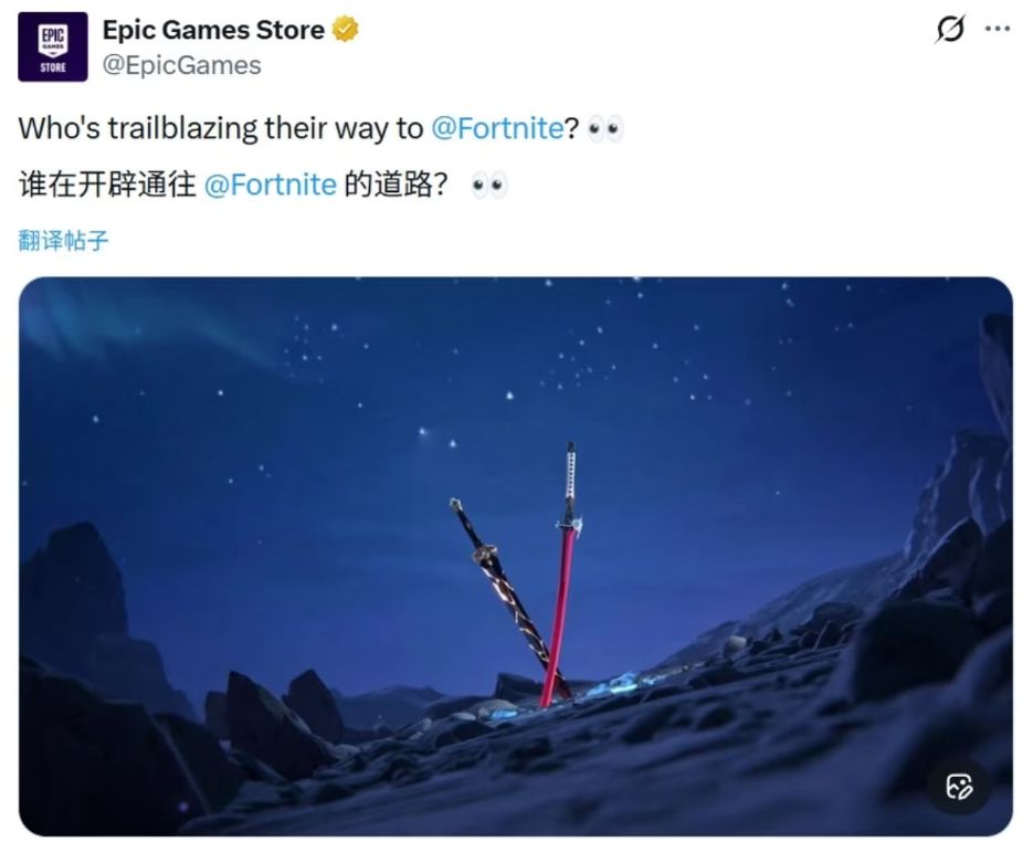 1月31日,Epic Games Store官方账号发布一则神秘推文,配文“谁在开辟通往@Fortnite的道路?”,并附上一张极具标志性的预热图片,迅速引发全网玩家热议。图片中,布满陨石坑的外星地表上,插着一把红黑配色武士刀与一把风格凌厉的黑色长刀,在深邃星空下格外吸睛。