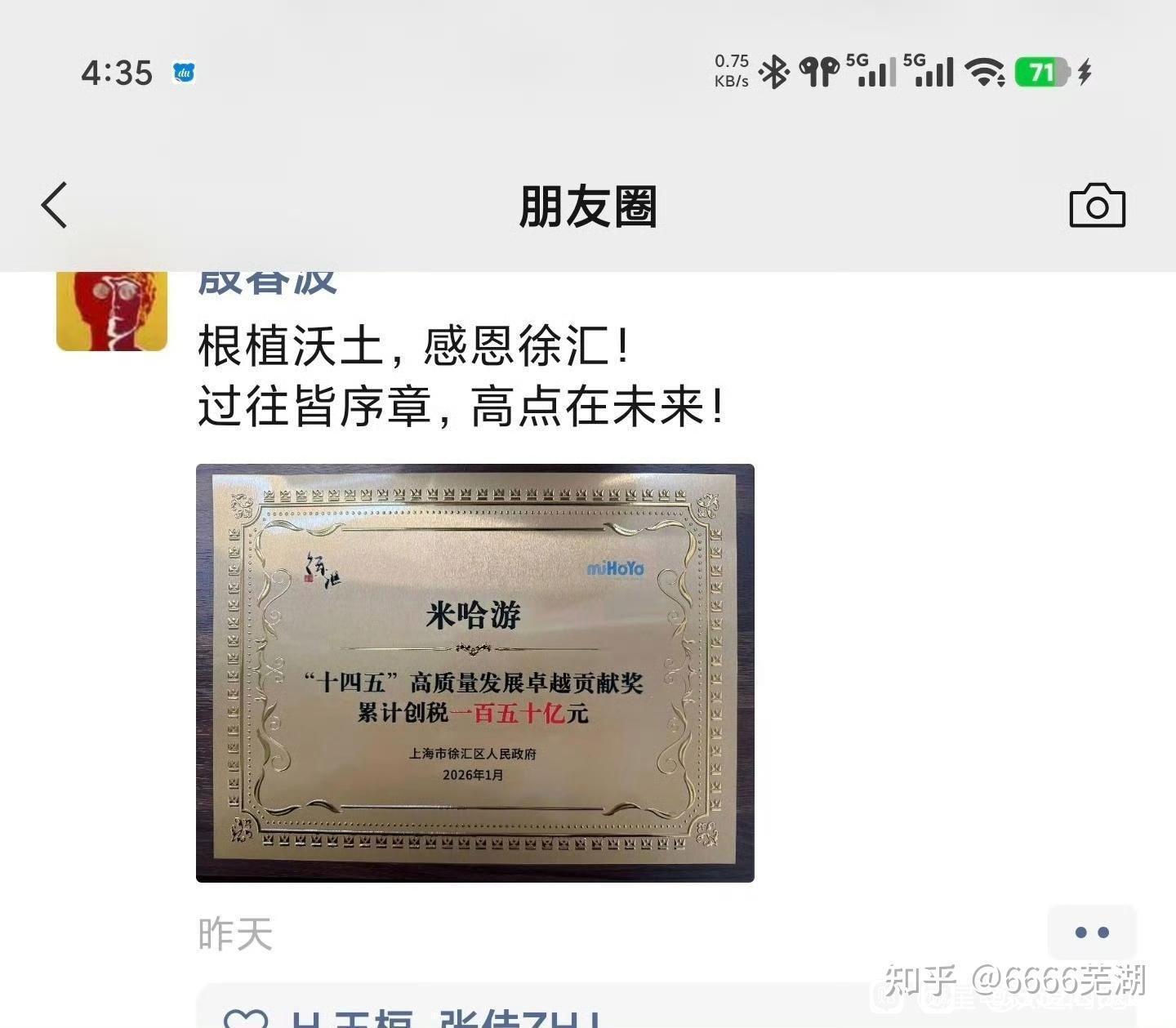 大伟哥在朋友圈动情回顾了这段历程:“从2011年到徐汇创业,一转眼十五年了!米哈游很荣幸在过去五年为徐汇发展贡献力量。”