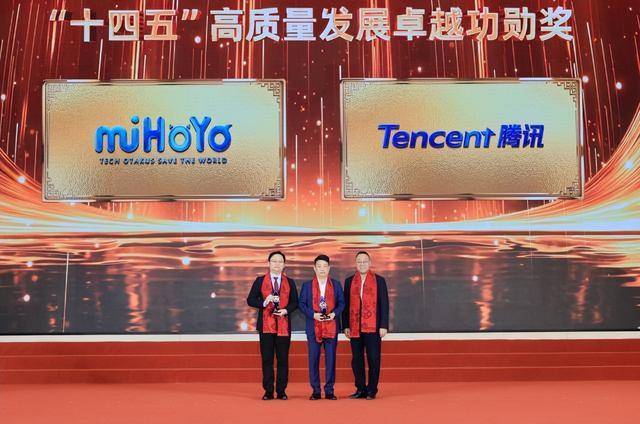 1月26日,腾讯与米哈游两家企业共同获得徐汇区“十四五”高质量发展卓越功勋奖。