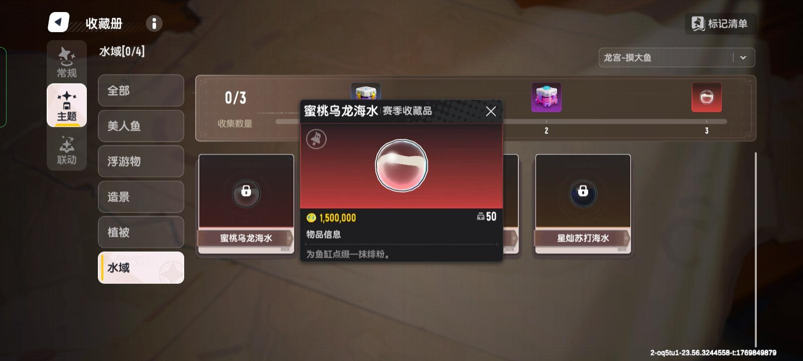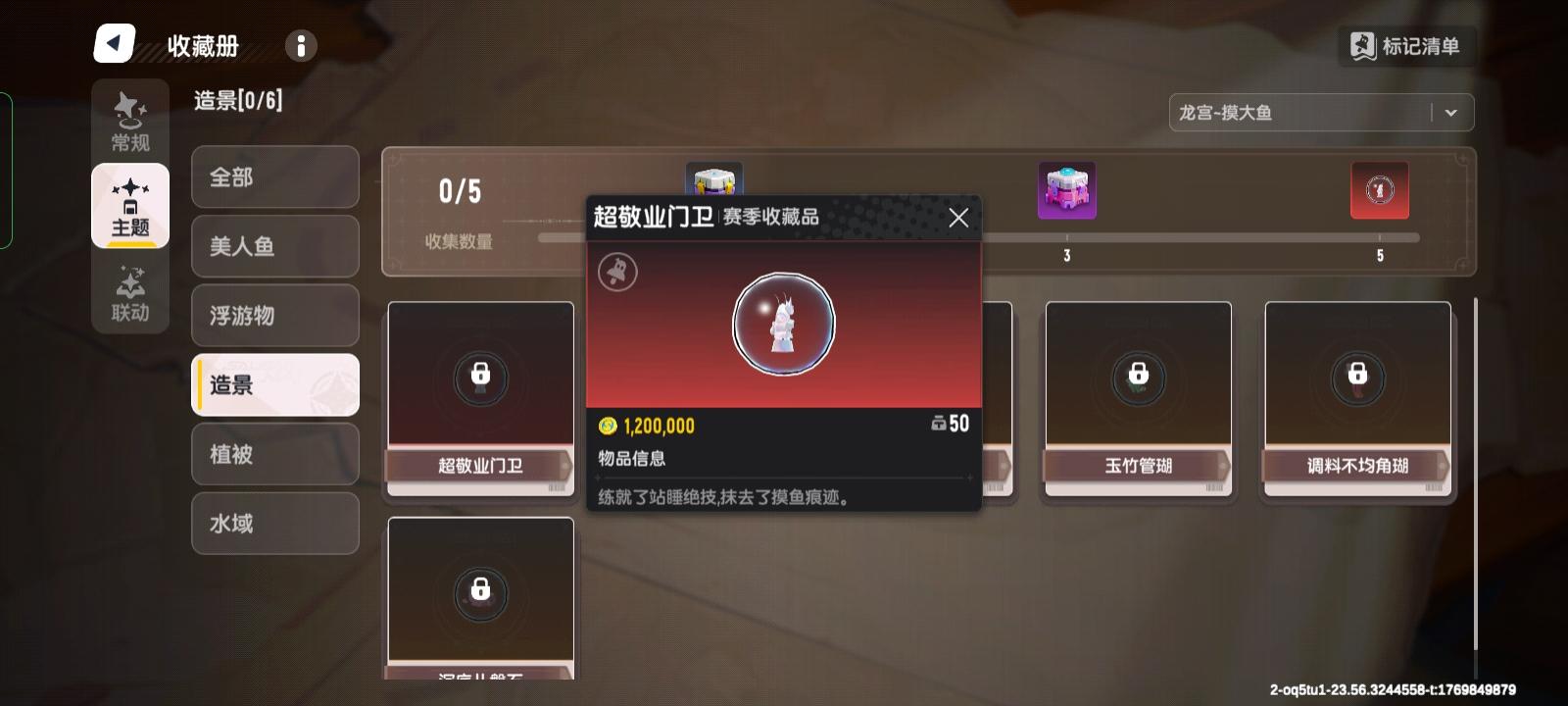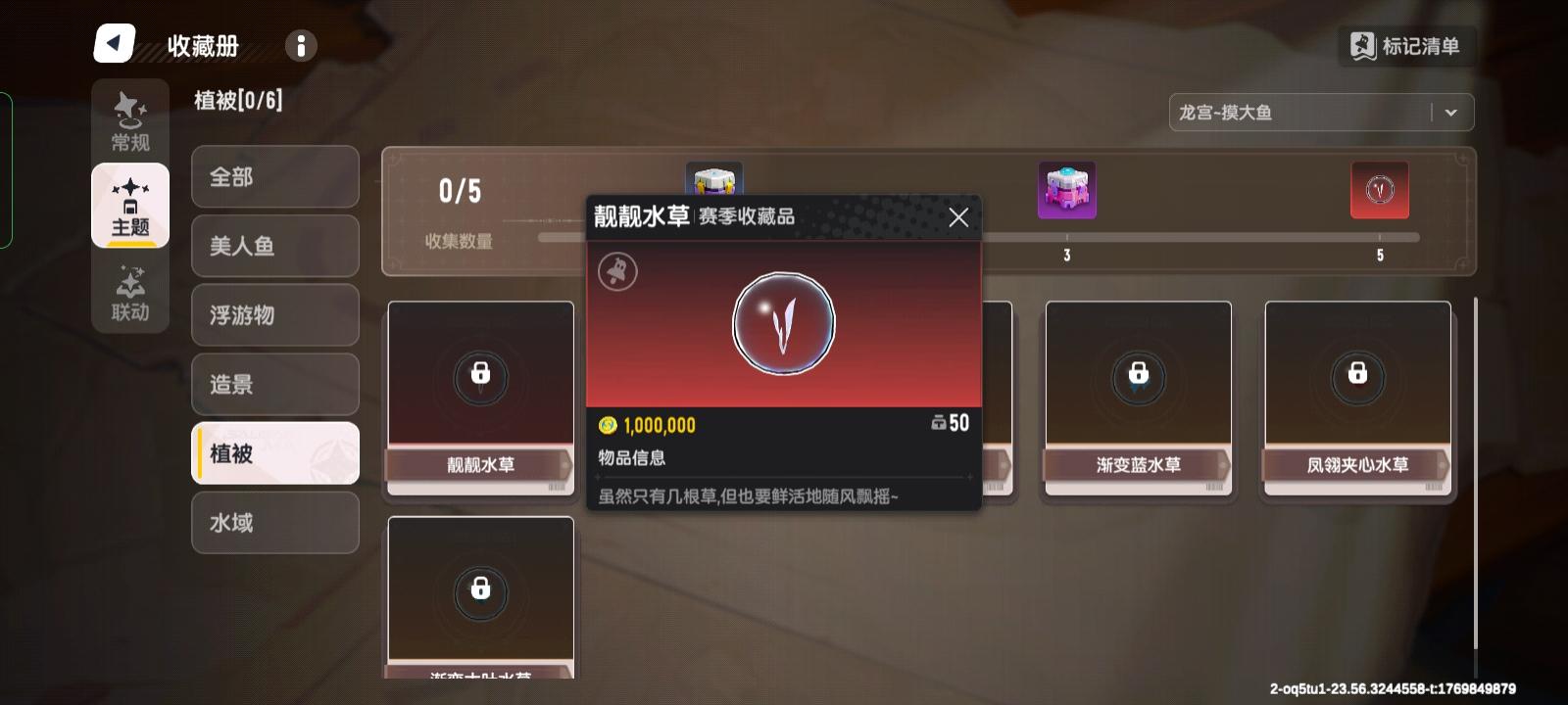 然后就是赛季限定的美人鱼收藏品,可以搭配属于自己的生态缸,可以摸金摸出生态缸配件,也可以做活动拿,就目前看反正美肠鱼必须自己去摸
