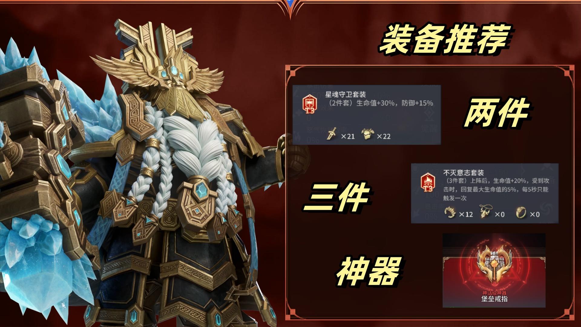 那么在装备方面直接两件套无脑选择星魂守卫即可30%的生命值加成就非常契合卡德格里姆的大招效果!15%的防御让他更加的抗伤!