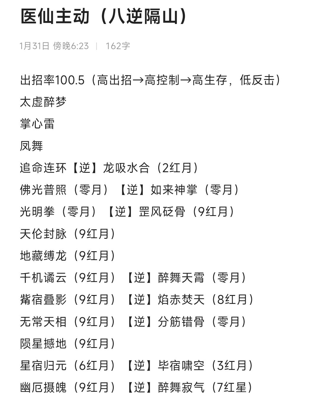 历时68天过藏剑,3小时过医仙,借鉴群里大佬思路重新调整技能组,仅供参考。下一个断情谷也不知道要多久了,尘泥也做不到优化日常的体验,或许这才是断情吧