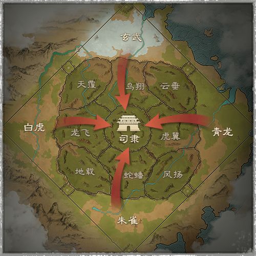 XP1赛季的沙盘地图,以四象和八阵图为基础,将其分为: