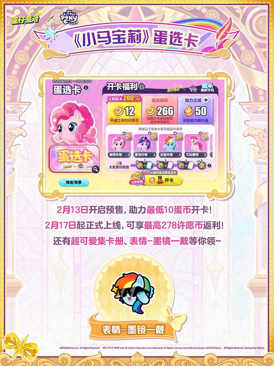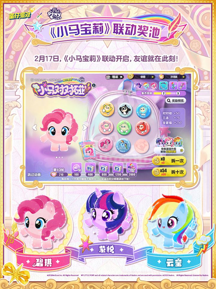 《蛋仔派对》×《小马宝莉》联动定档2月17日(大年初一),和小马们一起欢度新春~