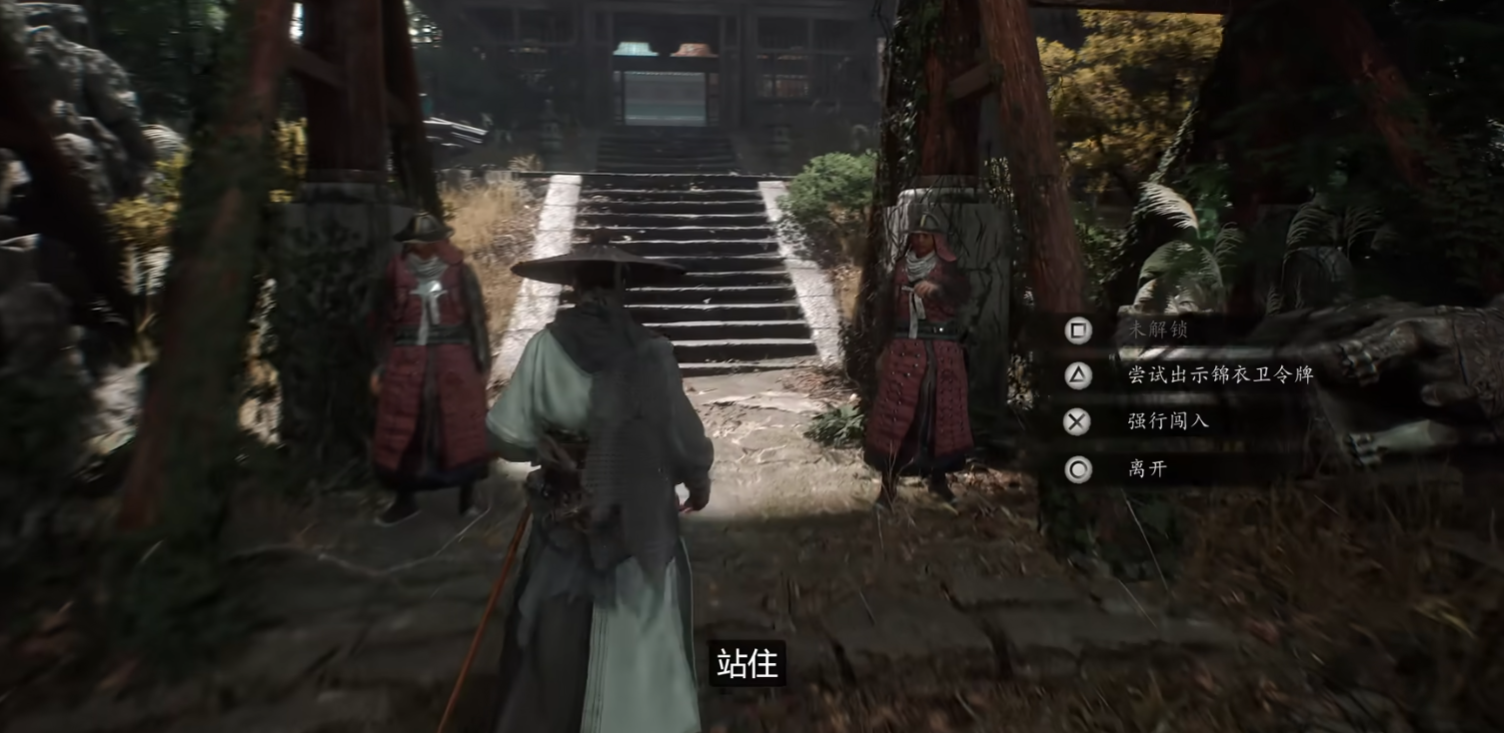 整个预告短片最惊喜的是回溯时间的玩法,主角通过回溯时间,完成了对同一家庭院的三次探索,一次是击杀守卫强闯,获得令牌,然后进行回溯。