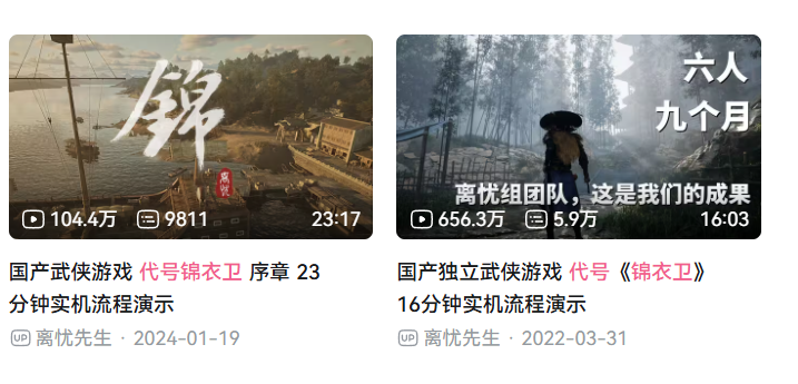 本次发布预告的《一盏秋声:锦衣卫》的前身,是曾经由六人团队开发的《代号:锦衣卫》,在2022年3月发布了实机演示,现在已经达到了650万播放量。现在也是得到了索尼的认可,和《失落之魂》一样加入了“中国之星计划”,制作团队从6人成长到40余人。
