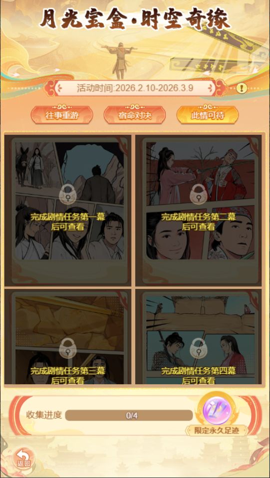 5.活动期间,玩家每完成一幕剧情任务,即可在"此情可待界面中查看对应的剧情漫画,收集齐四幅剧情漫画,可领取外观奖励