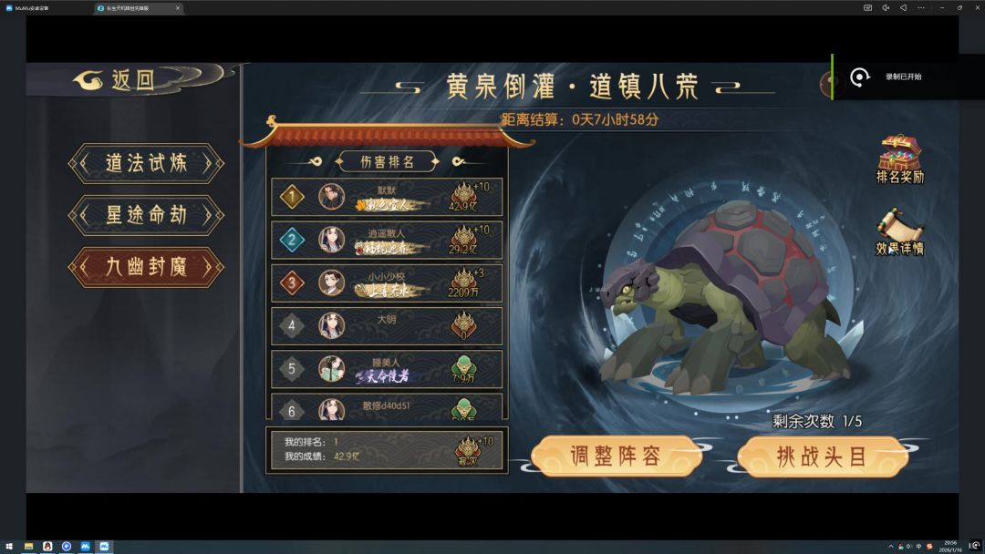 【高配展示】九幽试炼之紫壳乌龟高配阵容分享