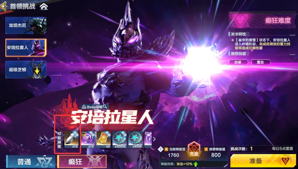 首领挑战首通加坦杰厄掉落20秘钥,首通安培拉星人掉落15秘钥,需要注意的是癫狂模式才会掉落。