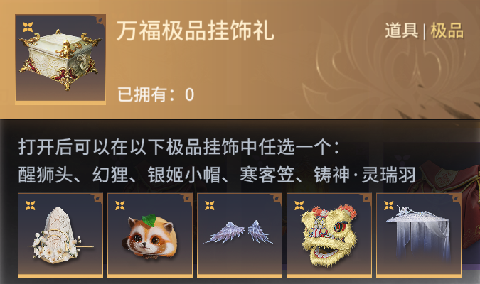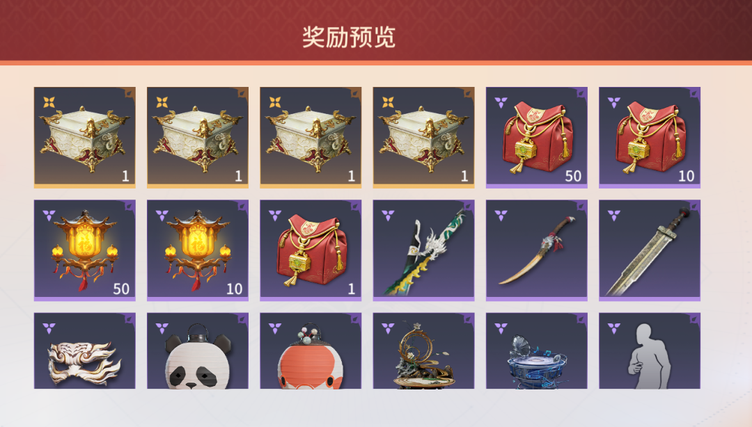 累计获得福运值到一定进度,可领取瑞玉宝箱任选礼*6、神佑宝灯*1、舞狮枪、极品挂饰【软萌元宵】、福圆背景任选礼、福圆动作任选礼、福圆挂饰任选礼等奖励!
