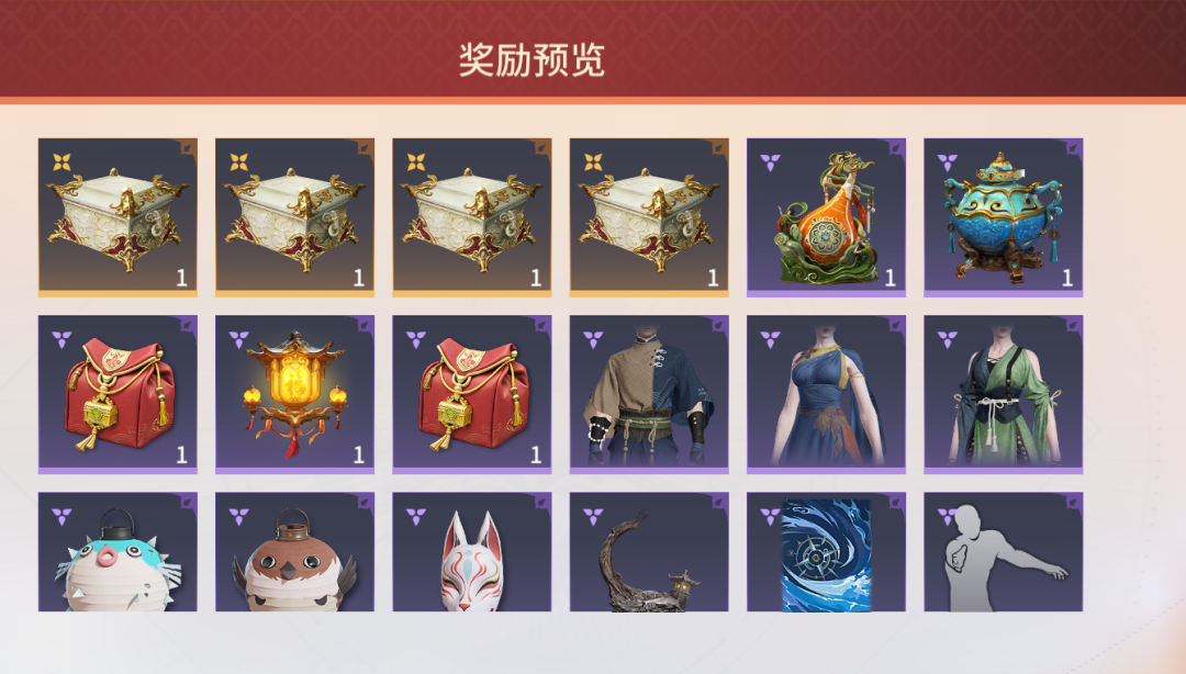 游玩无拘乐园地图,累计找到5个、10个戏影灯,可得瑞玉宝箱任选礼*1、神佑宝灯*1奖励。