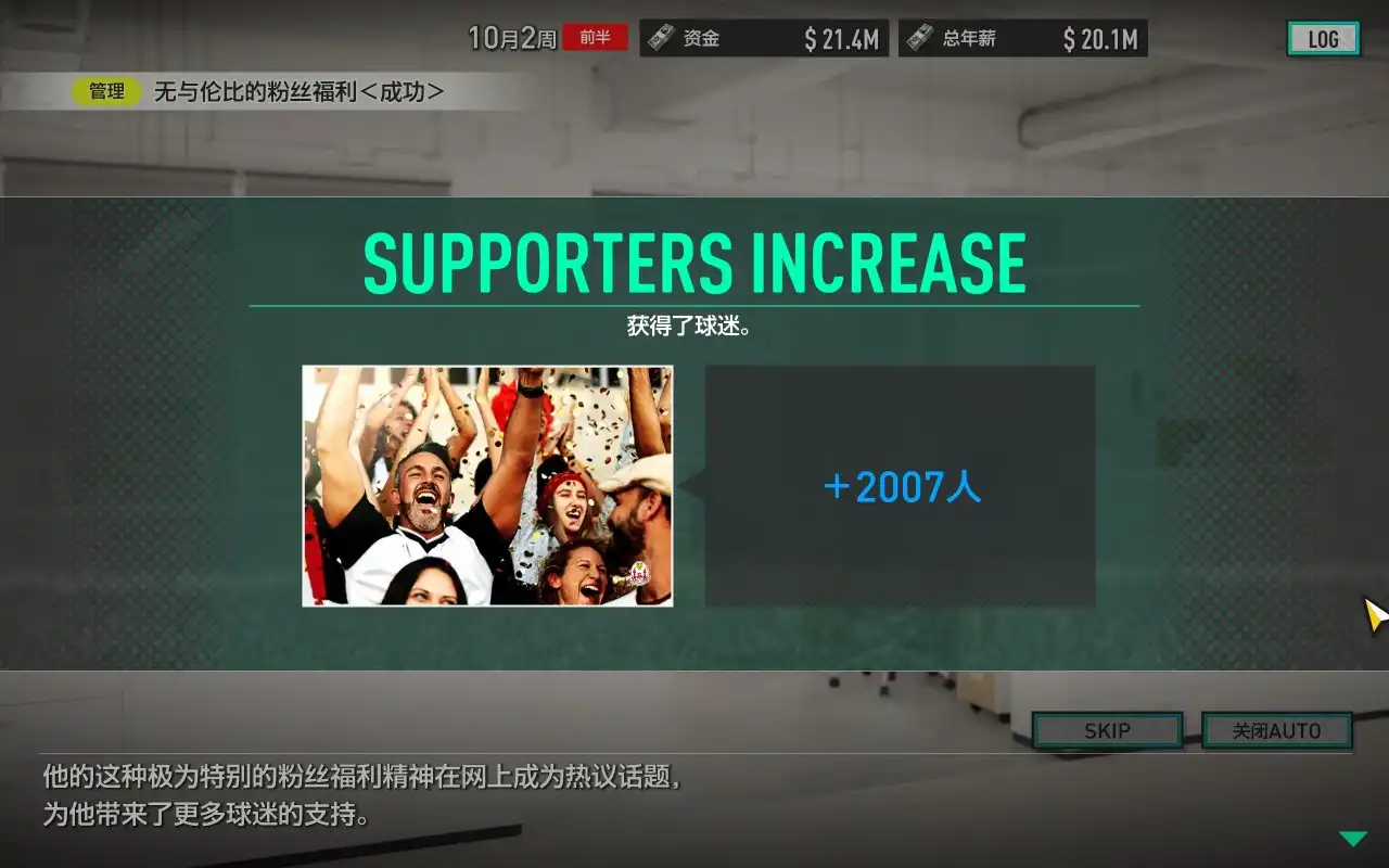 然后建造更大的球场吸纳粉丝,粉丝越支持我们,我们的钱也越多。