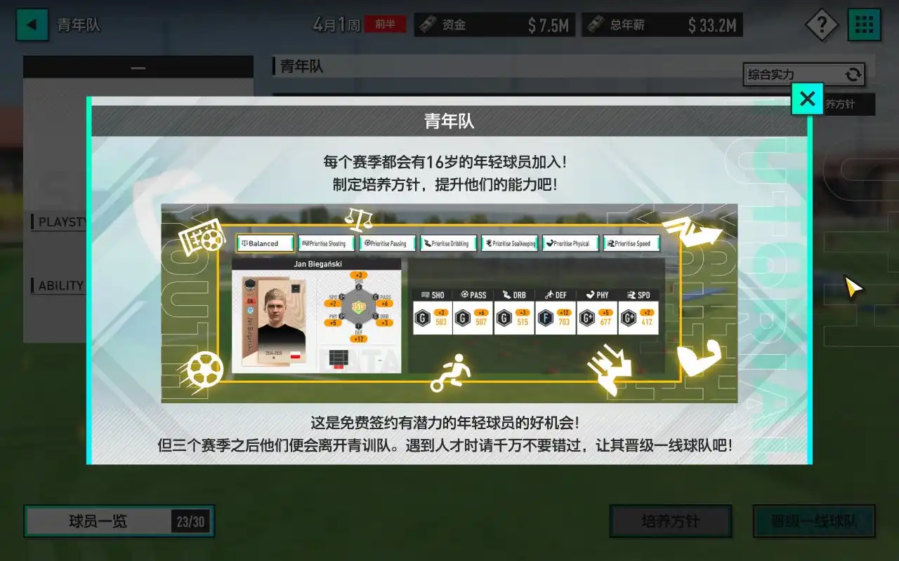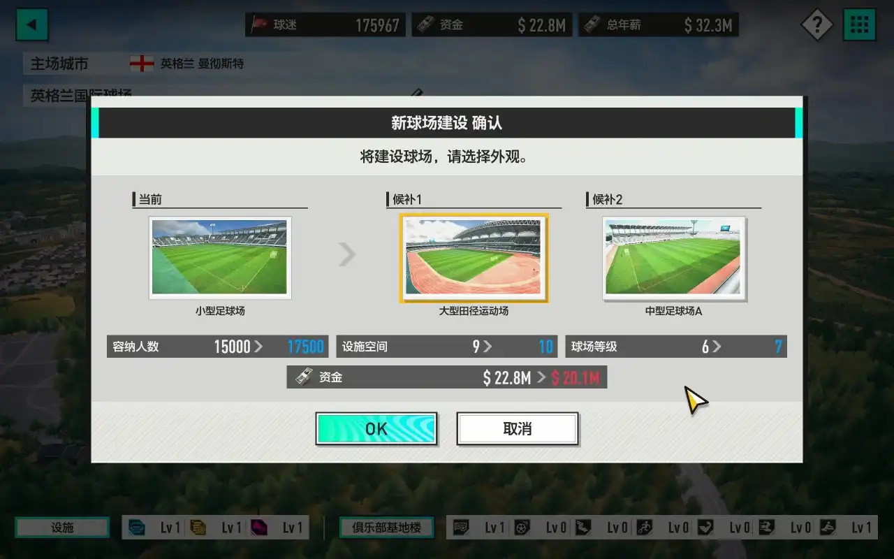 有了这些钱我就可以大力发展建设我的球队了。首先基础设施要弄好,毕竟好的设施关乎着球队的训练成果。