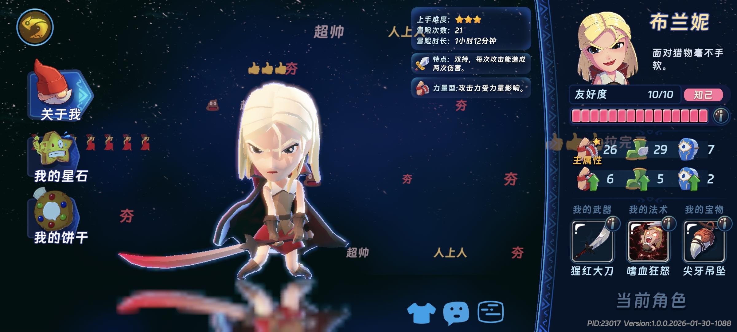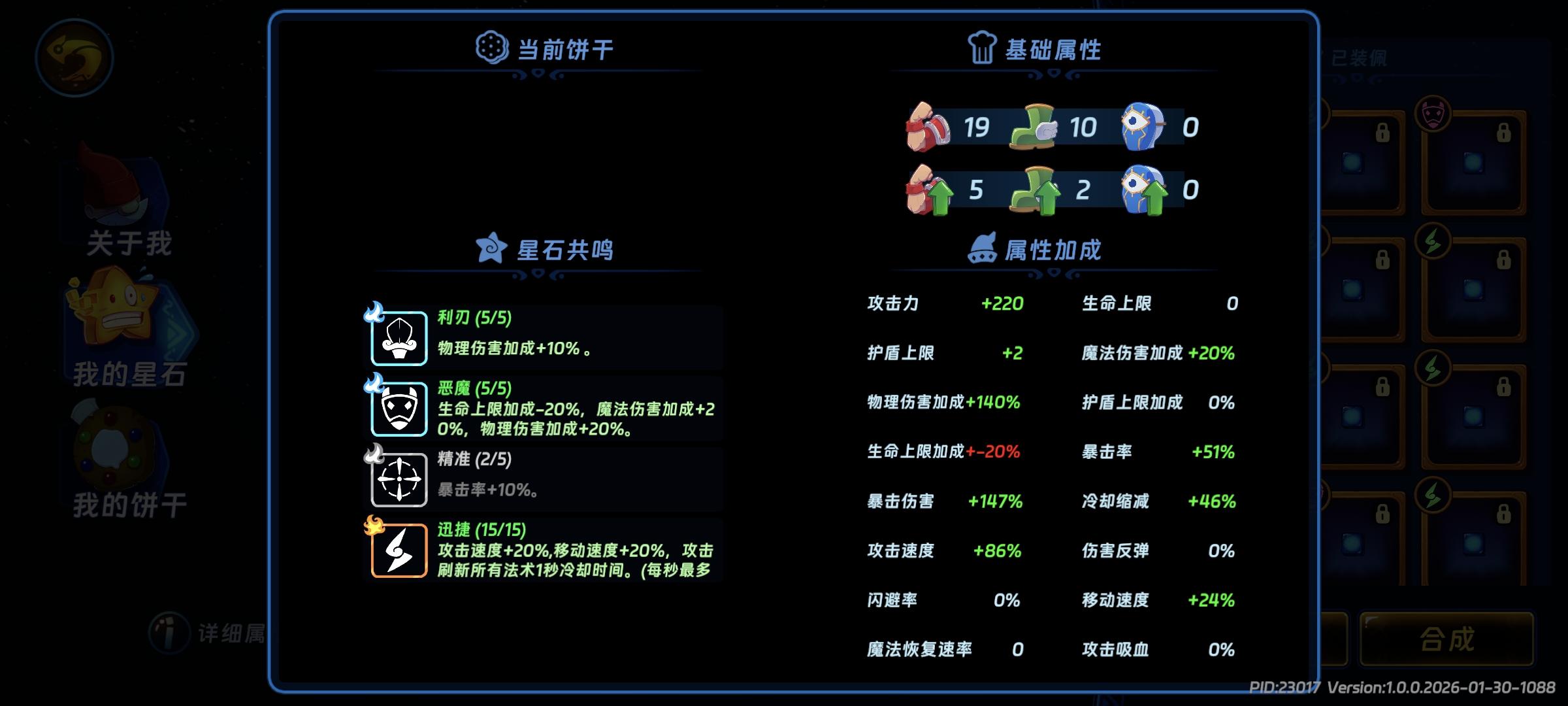 我等级不高,开服五天勉勉强强打了个240级,重点是凑出15迅捷5利刃5恶魔(15迅捷十分关键!),主词条方面攻击力大于物理伤害加成,差不多18:7携带即可,副词条方面暴击率需要50(后期肯定要堆到90以上,此处因为大刀布兰妮技能提供50暴击率,所以只需要50即可),CD需要40以上(CD上限50,叠40左右即可),爆伤攻速越高越好,爆伤优先级大于攻速。