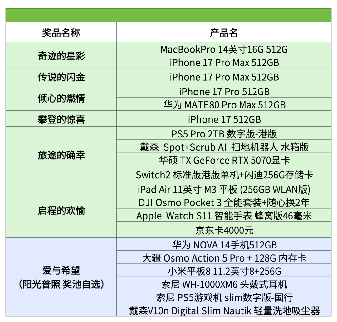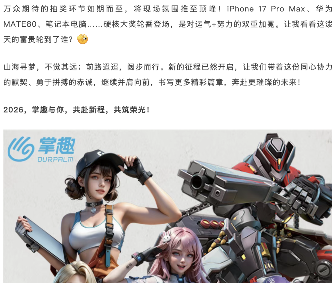 《星塔旅人》研发商悠星网络,最高档抽奖奖品“奇迹的星彩”为MacBook Pro或iPhone 17 Pro Max;阳光普照奖为PS5、手机平板等产品六选一。