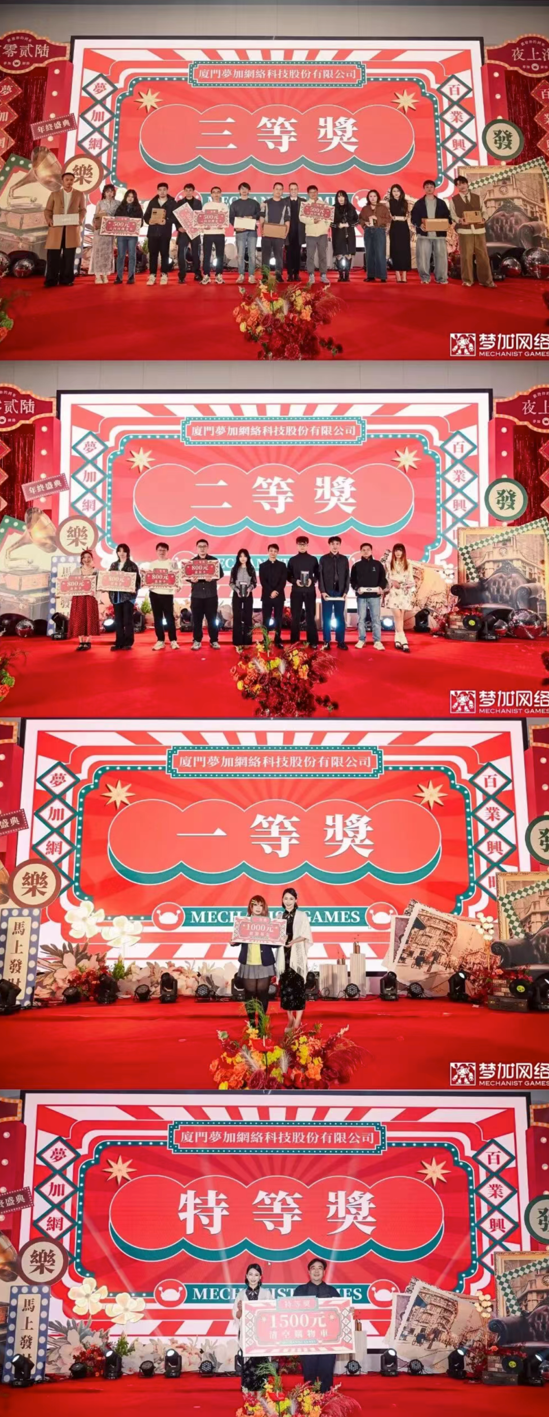 《叫我大掌柜》《寻道大千》研发商延趣游戏特等奖为价值3万元的30克黄金,一等奖是苹果/华为全家桶,阳光普照奖为1000元现金。