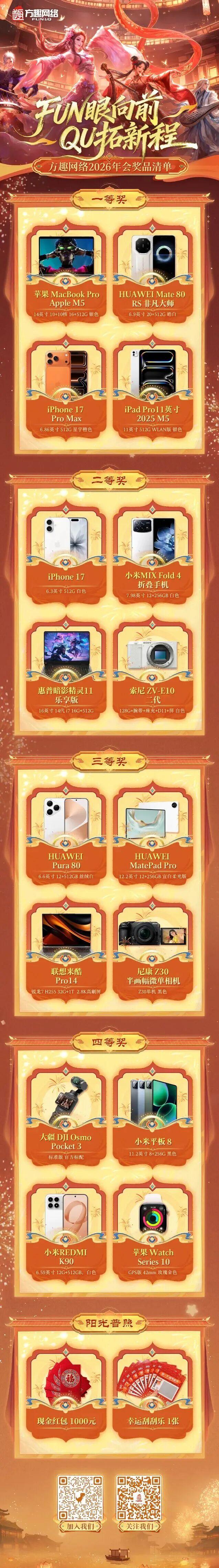 凭借《蜀门》等产品长线运营的方趣网络,奖池包括各类手机电脑,阳光普照奖是1000元现金和刮刮乐1张。