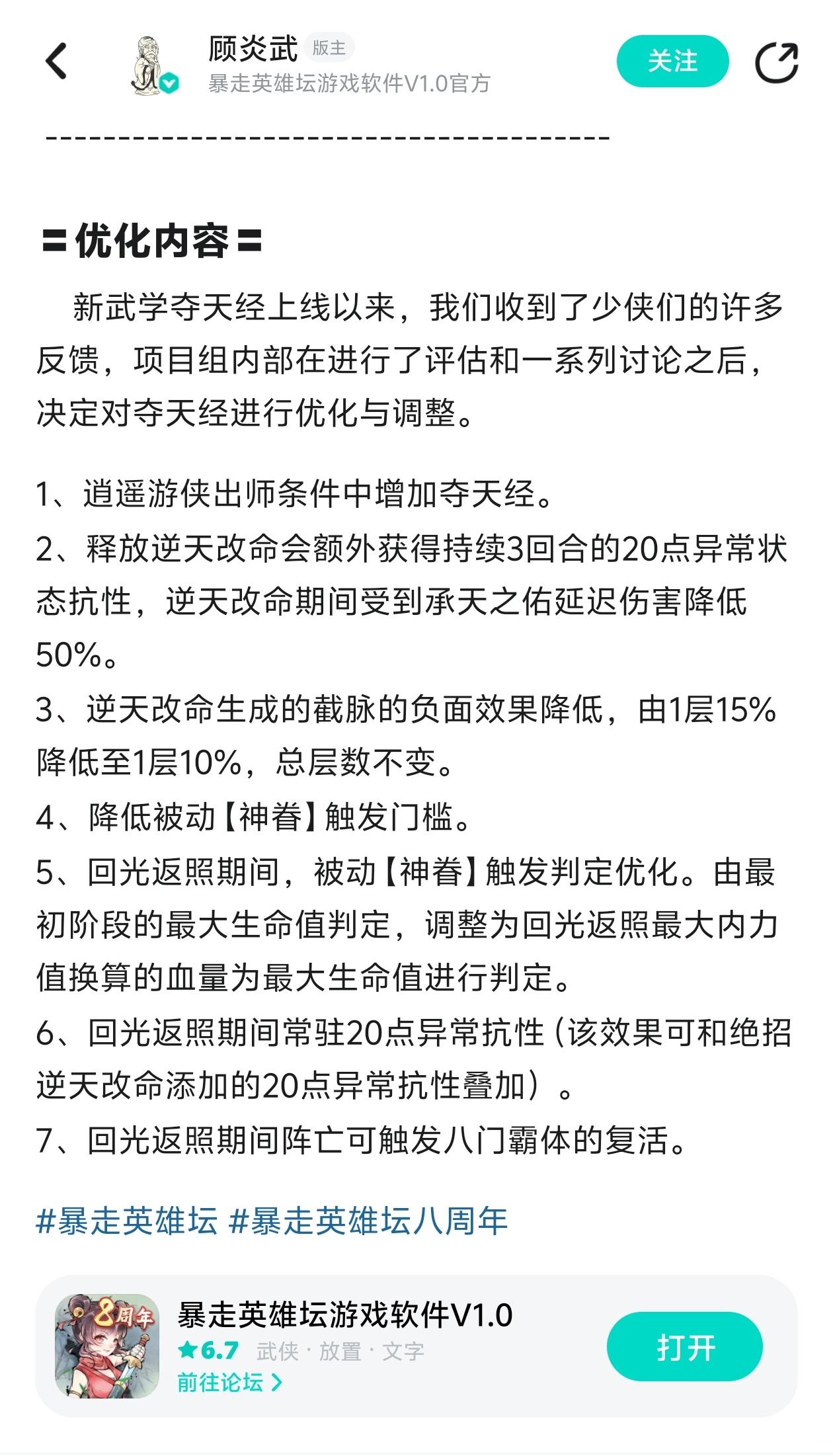 当时优化的内容我都截图下来了,请看第二张,简直是特大幅度的加强啊!