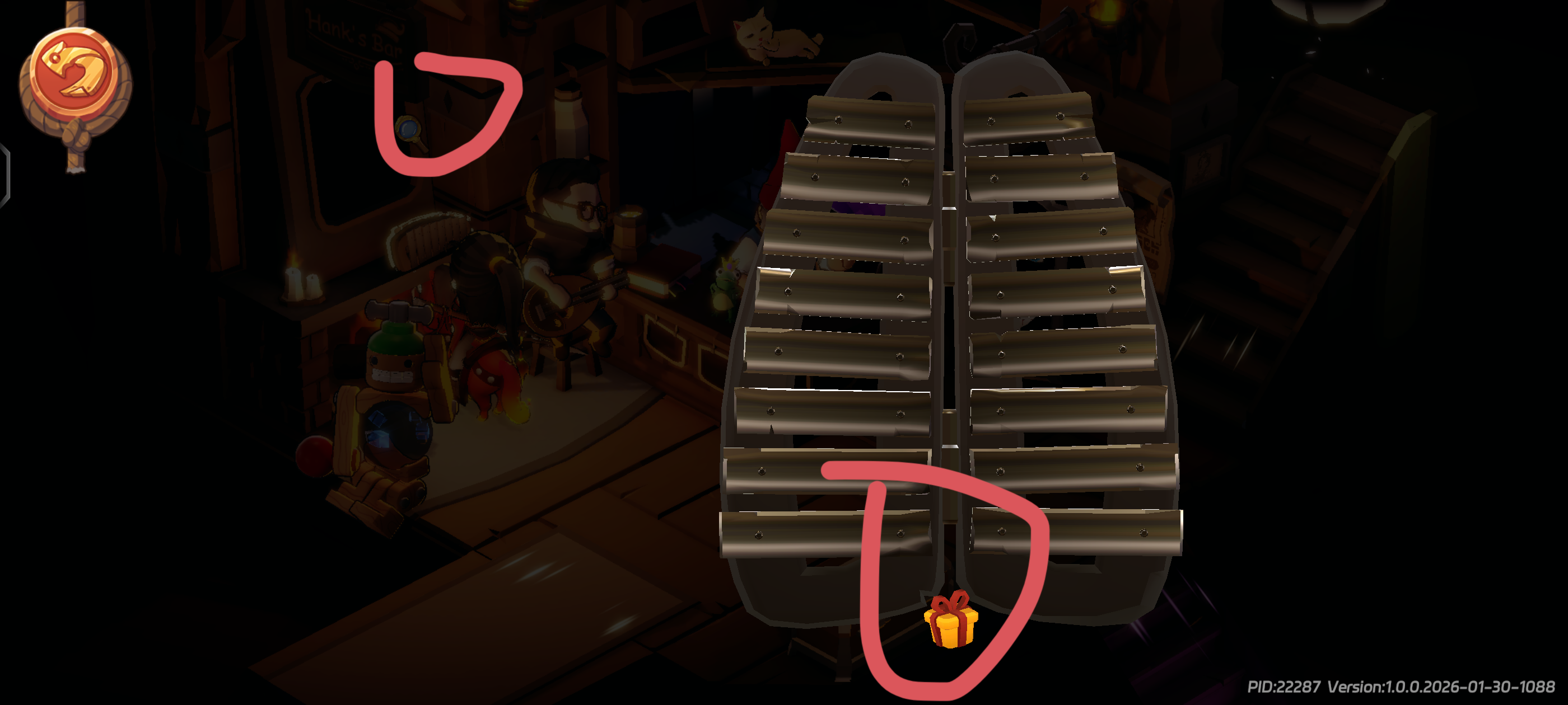 先点击远视然后分别在楼梯口和柜子上找到礼物盒