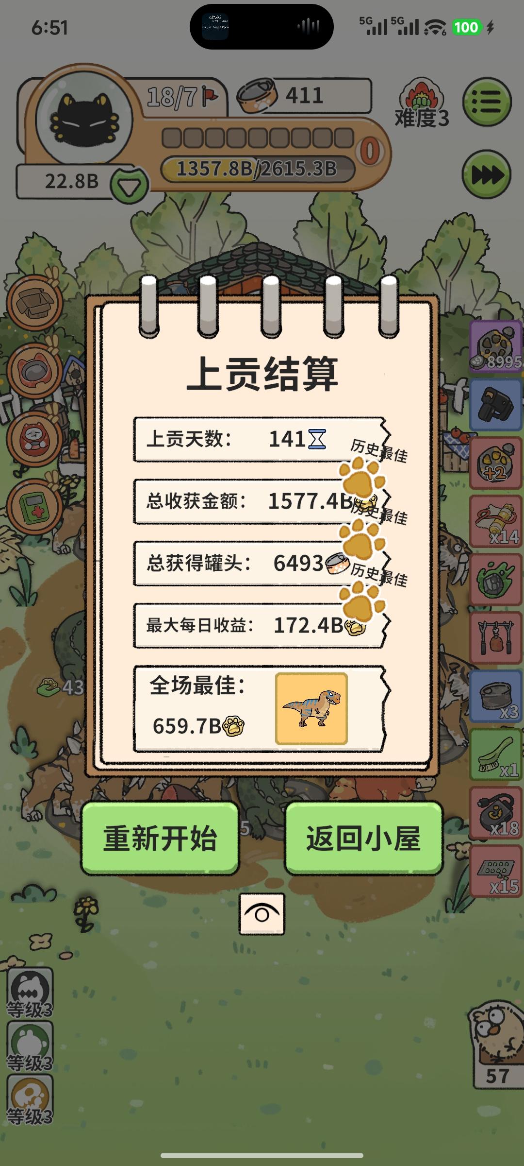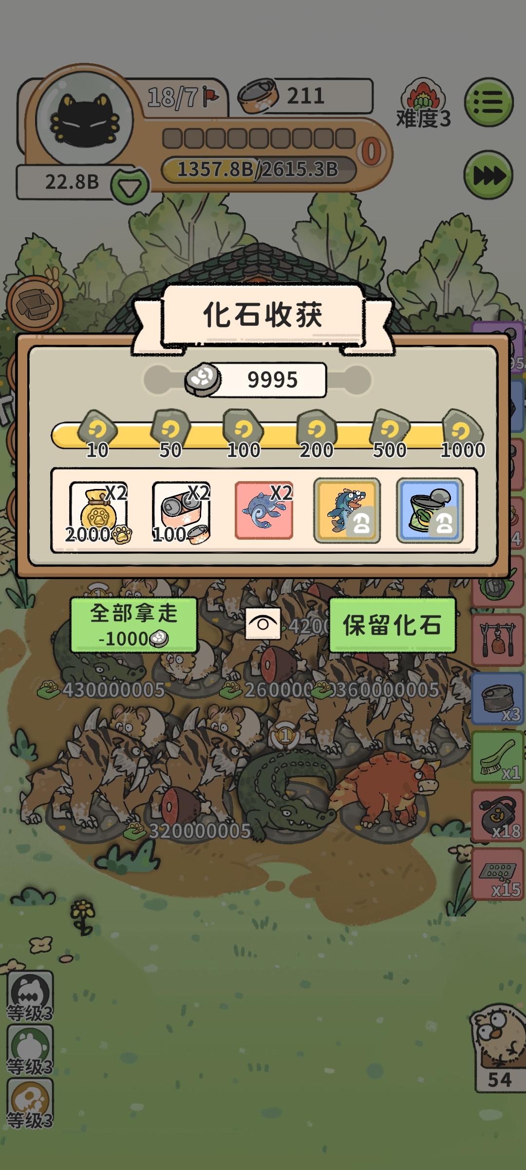 唯一可惜的是最后湾鳄,剑齿虎和霸王龙全卡在1000M不涨了,也不知道为什么。