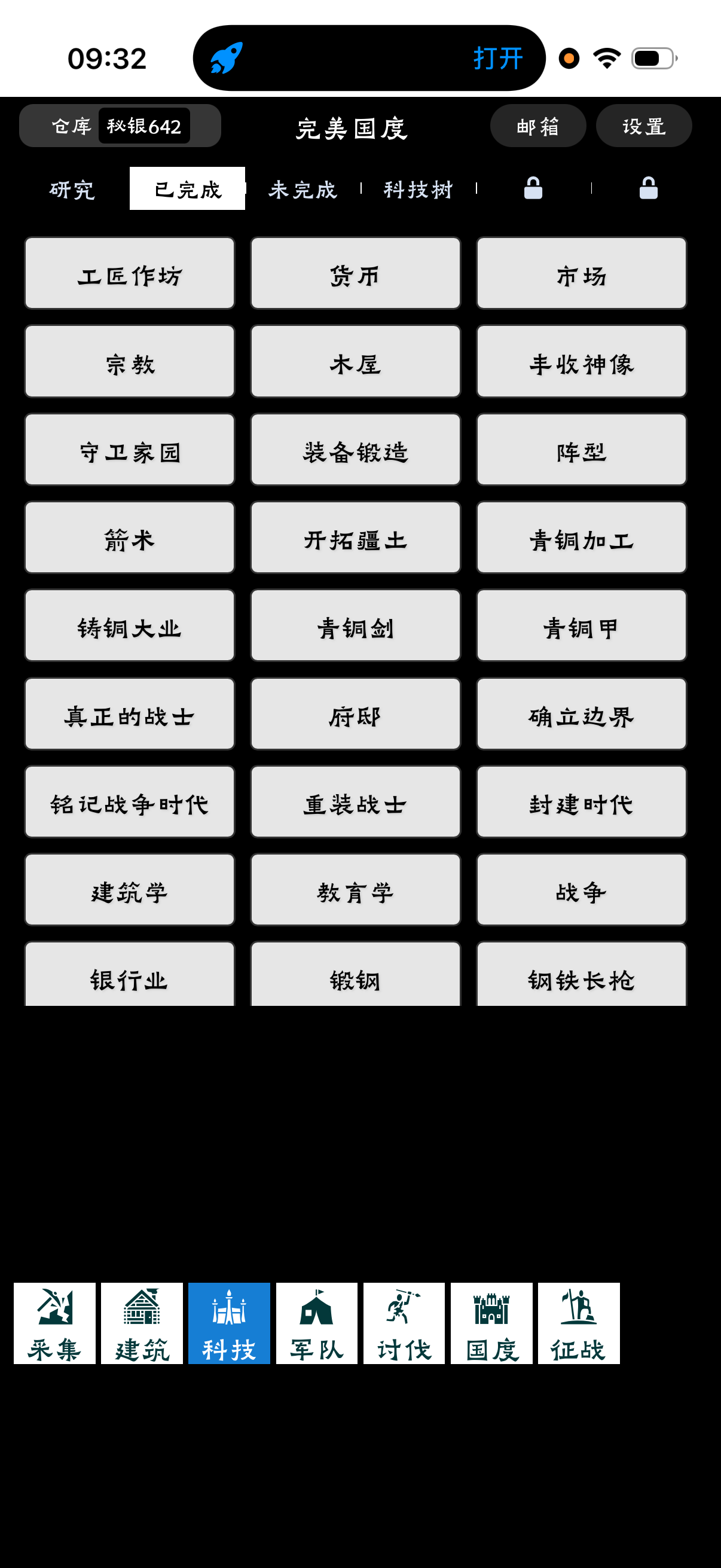 在游戏的前期,也就是满人口之前,整个发展的限制器就是科技,也就是研究点这项资源。不点科技不可取,但是盲目点科技一样不可取。在第二天成功点出征战和国度之后,到第六个人口建筑伊甸园之前,只有穿云箭(解锁最强蓝兵穿云手,但需要中级兵营招募),化学(解锁硝石),肥料(+5%食物),经济学(解锁人口建筑住宅区),新矿石(解锁纳红石)六种高收益的前置科技。而代价是51w研究点和其他各类资源共43w,其中包含前期珍贵的13w金币和难以收集的8w铜,8.5w钢。