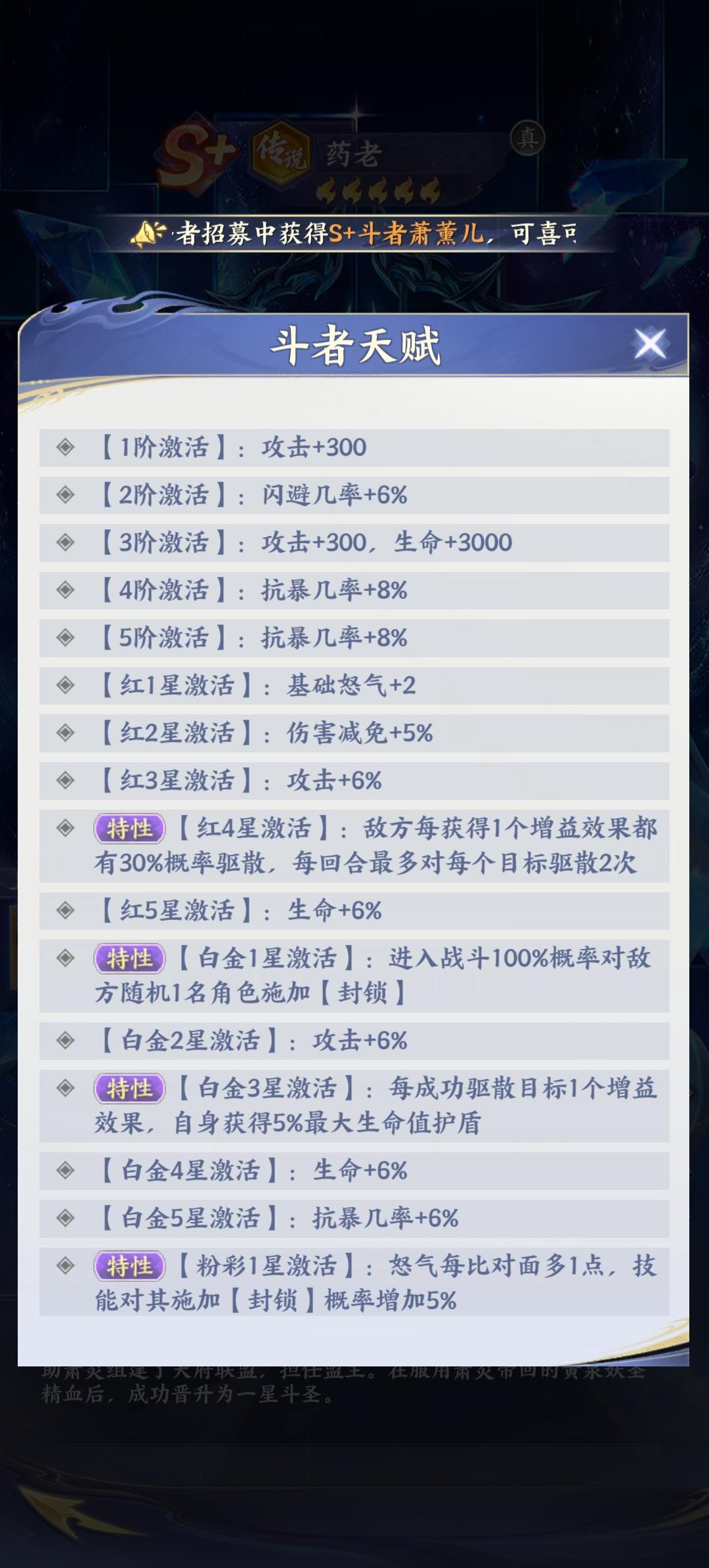 定位:减怒 驱散 的工具人,你可以看成是摘星老鬼+冰尊者的缝合体。大氪可以氪,中小氪建议等输出UP,药老主要还是PVP作用大。