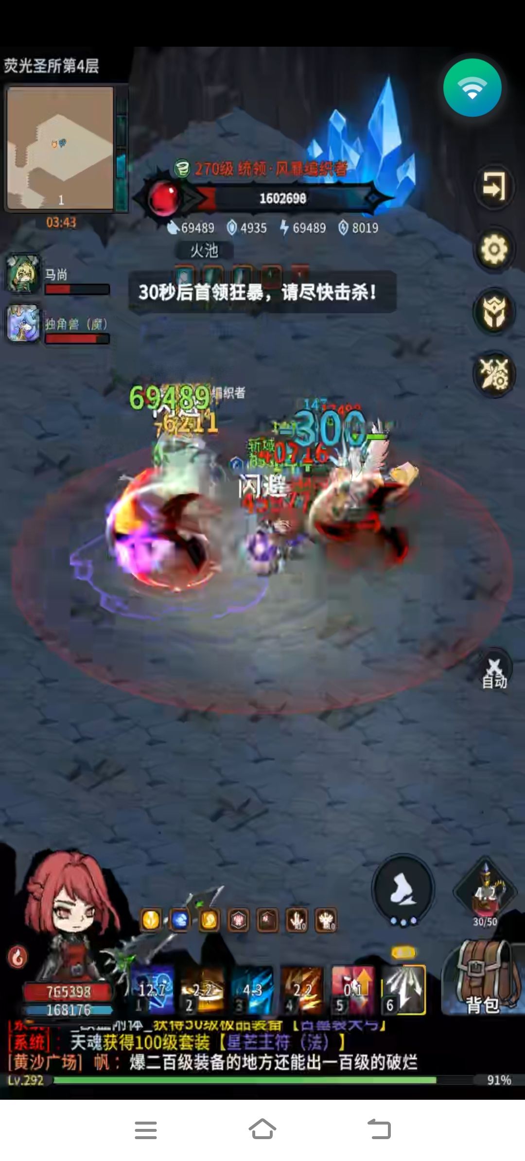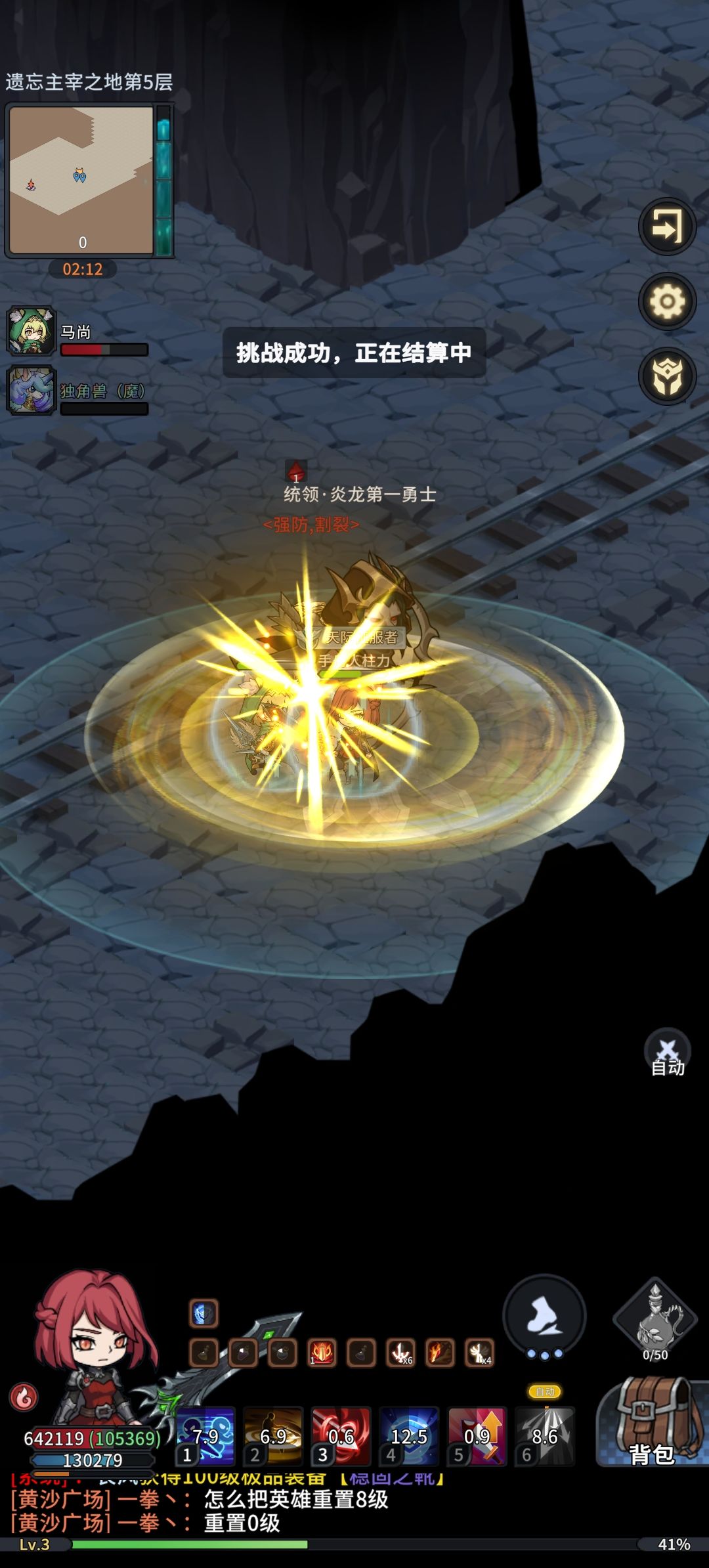 boss攻略:风属性,合击技能不要开自动,boss出来立马放,等到半血后还能放一次,能吃的增益药水要全吃,技能优先带单体高攻击技能(比如法师火球),不用走位,boss半血前不浪费复活次数。