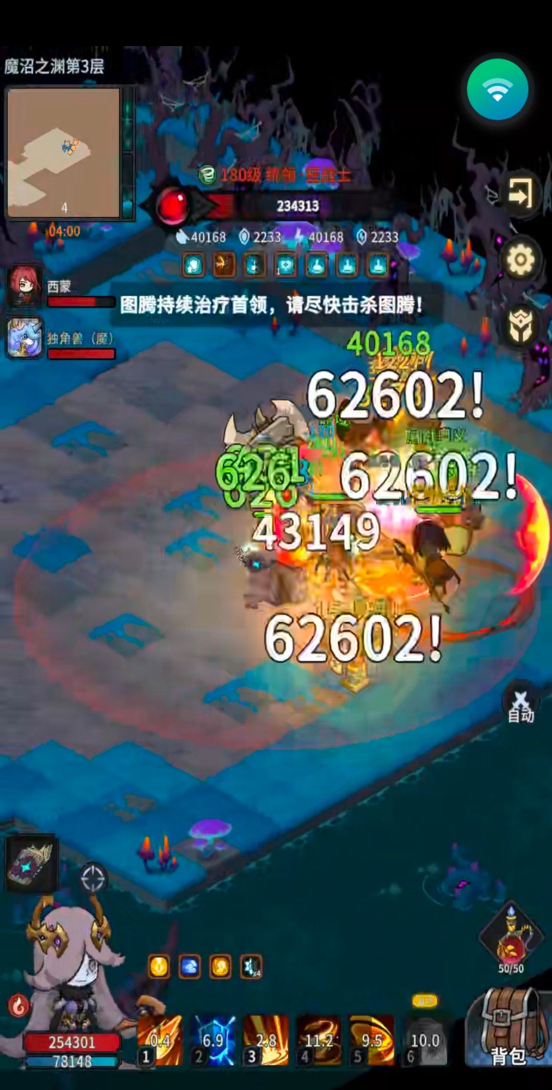 把boss逼在角落,让三个图腾聚在一起,优先把图腾都打掉,不用在意boss回血,打图腾的时候躲着点boss,打完图腾打boss就过了。