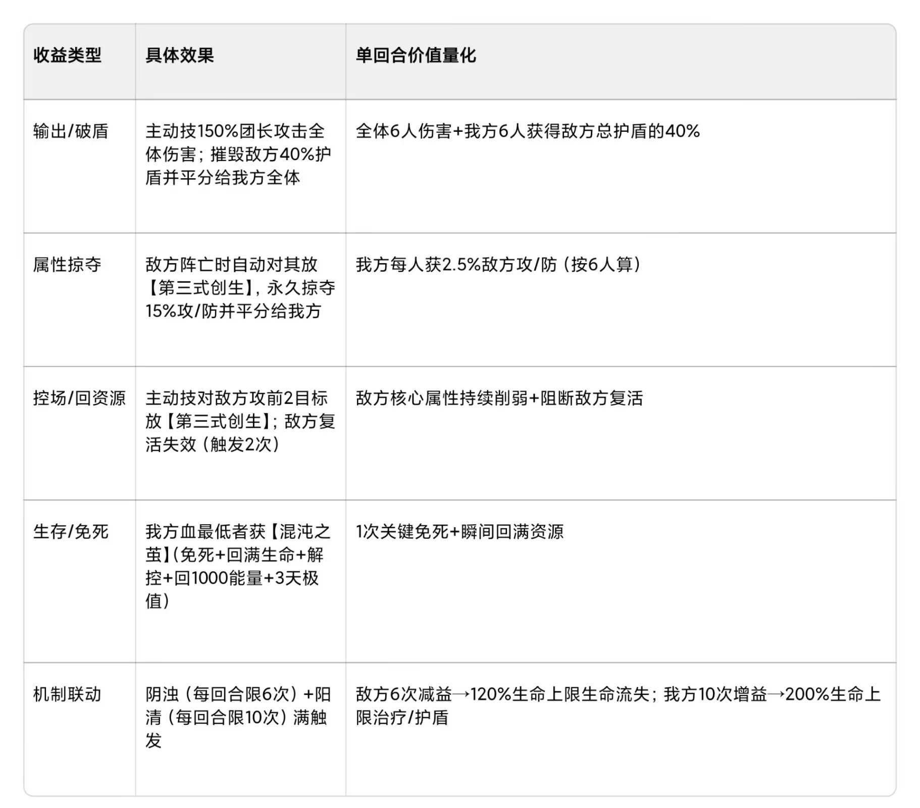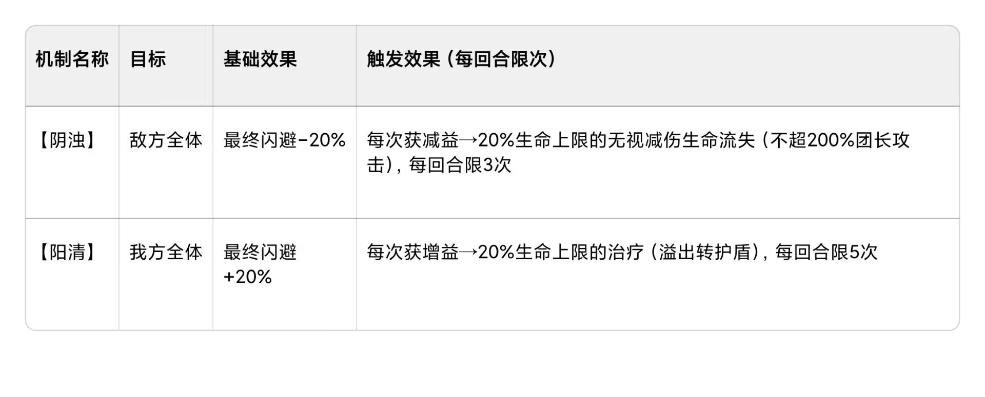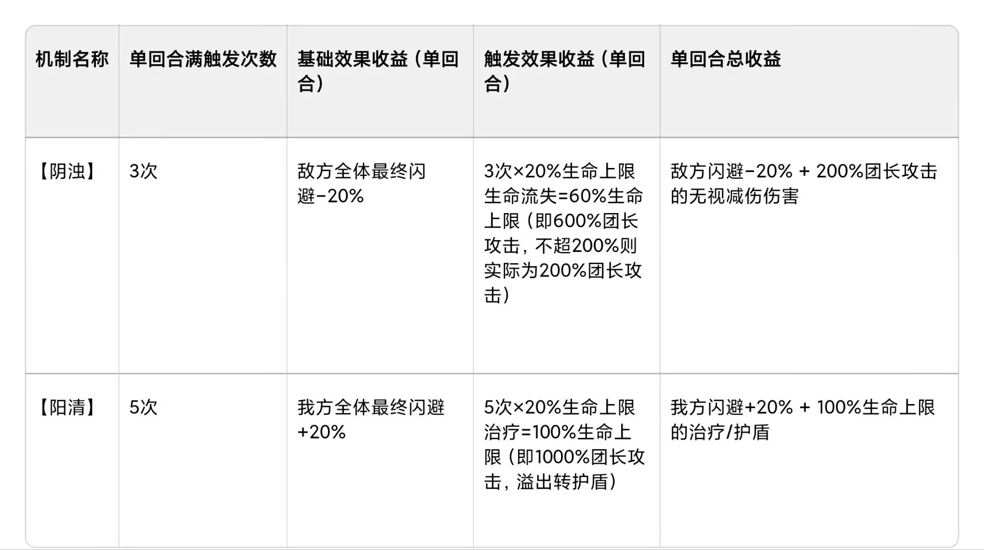【阴浊】和【阳清】的实战收益对比表(以 “单回合满触发” 为前提,假设单位生命上限 = 团长攻击力 ×10)