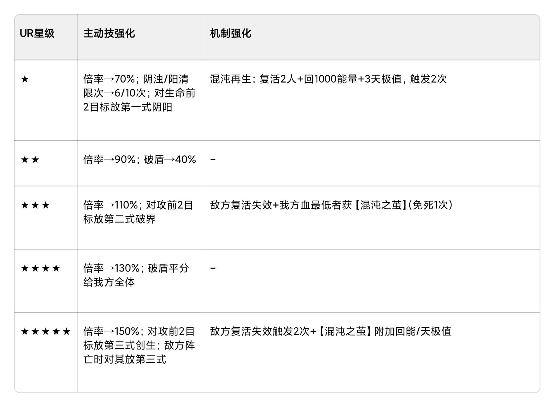 四、UR 星级强化效果表