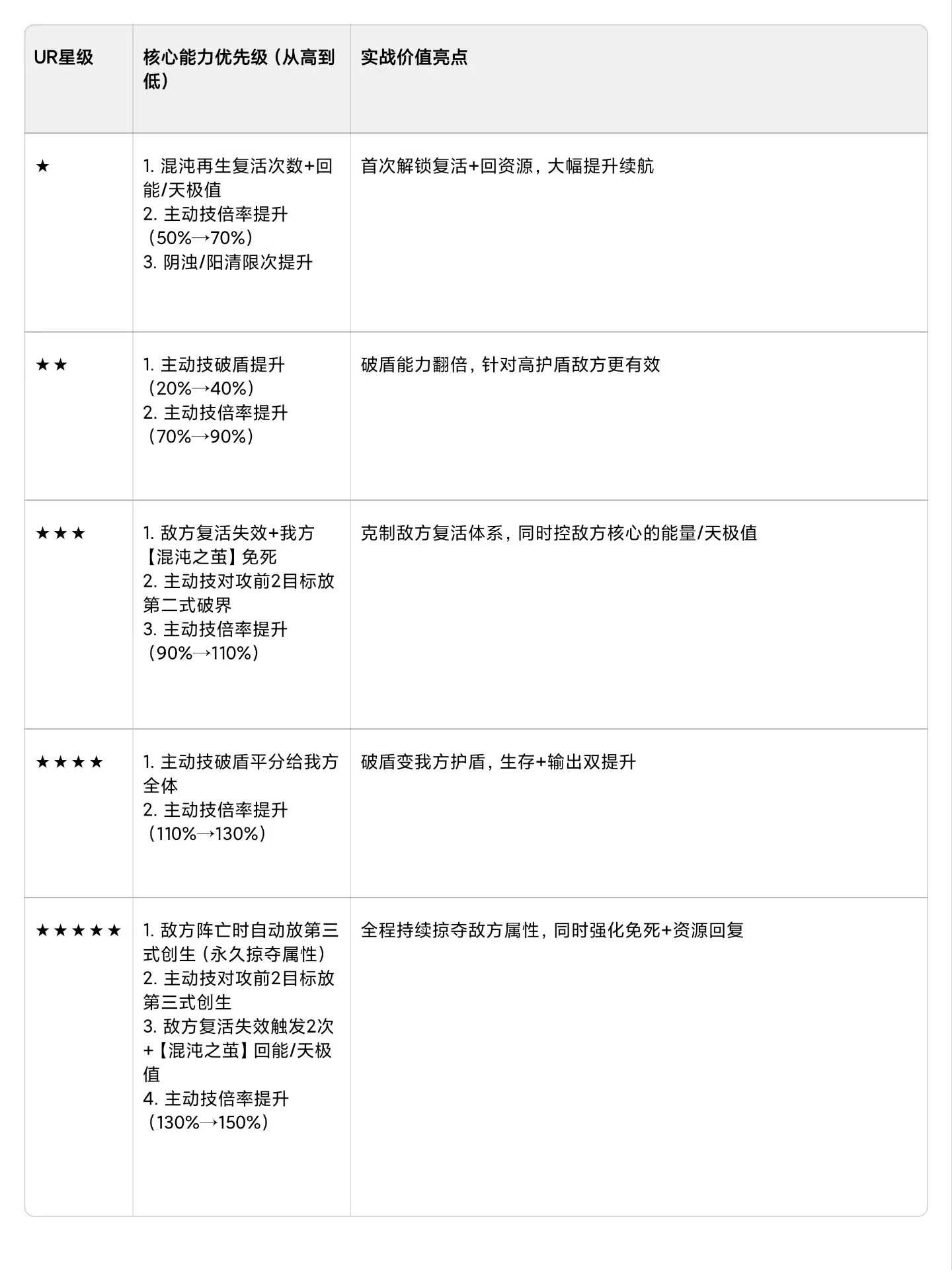 不同 UR 星级的核心能力优先级清单(按 “提升幅度 + 实战价值” 排序):
