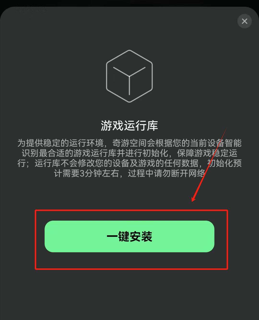 点击【一键安装】游戏运行库