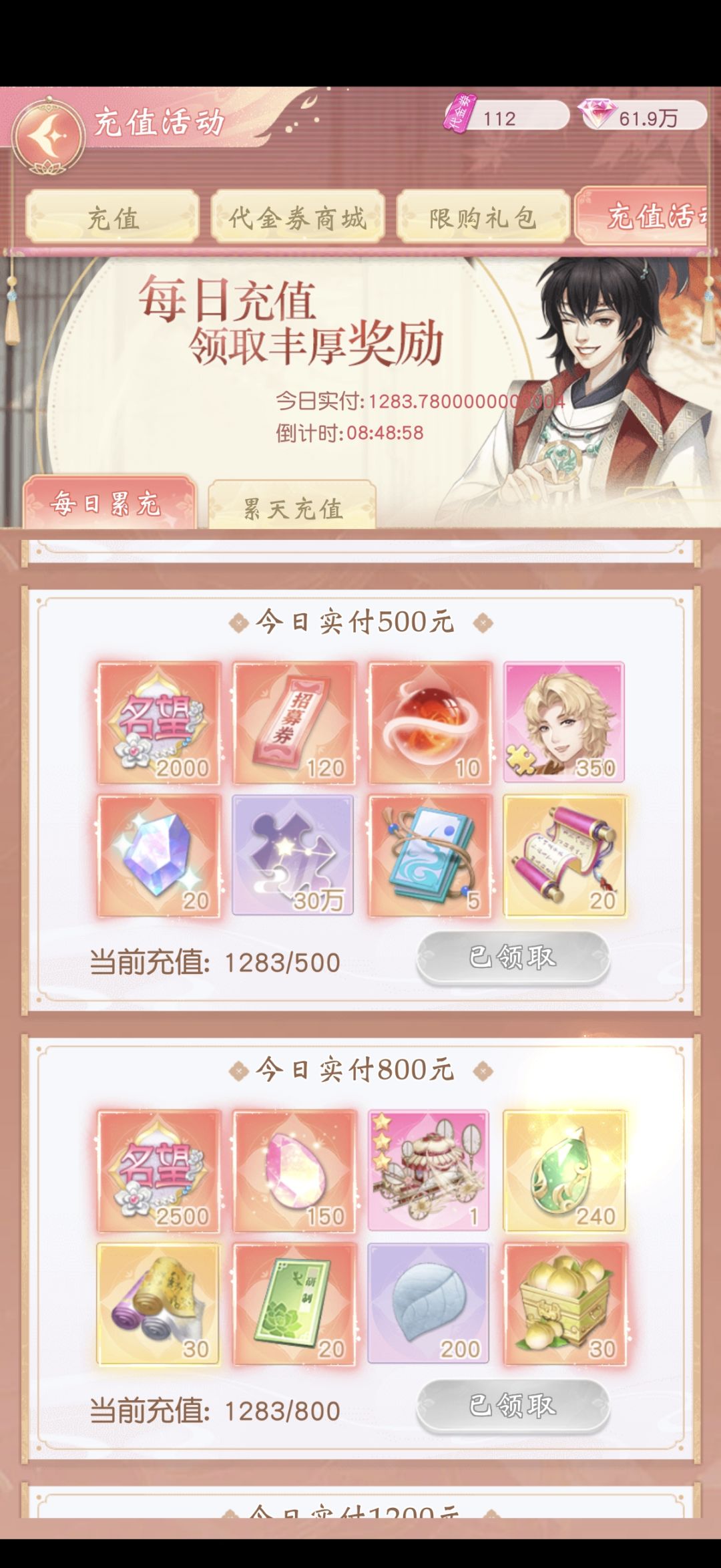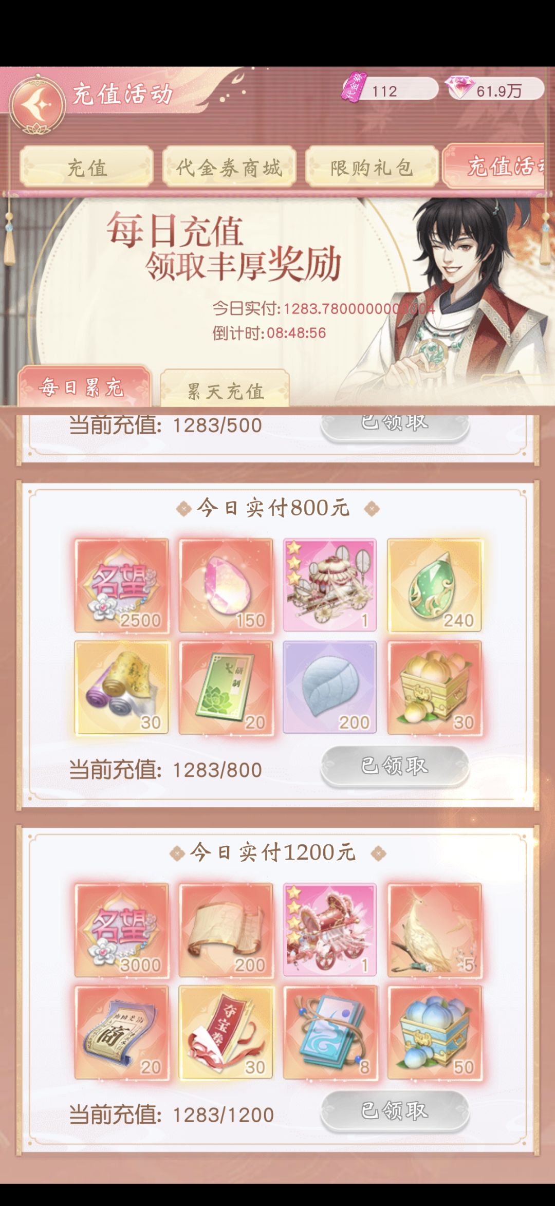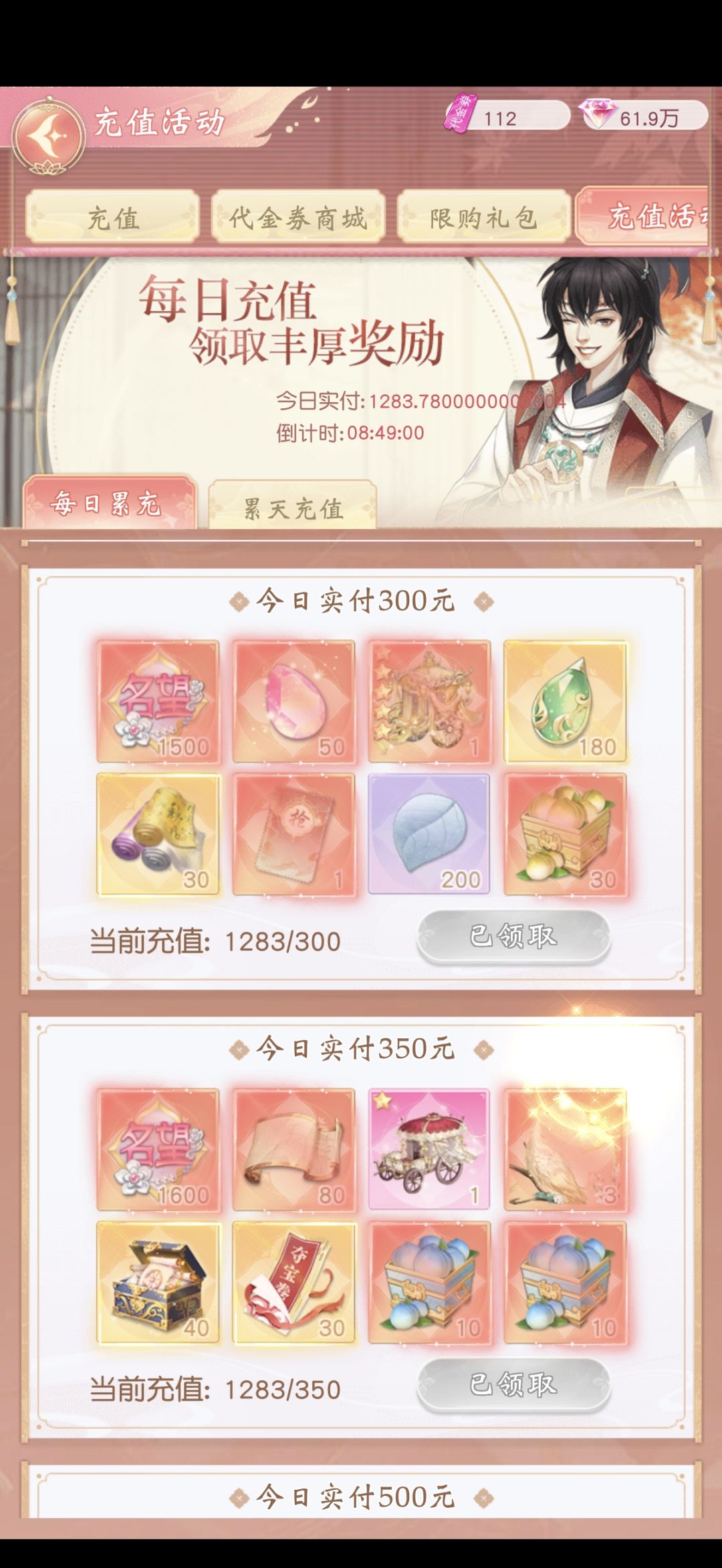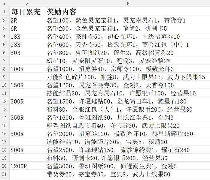 锦绣商铺 充值奖励