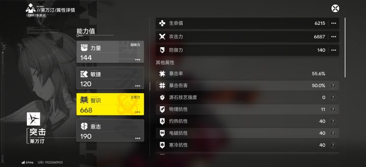 满潜角色武器,武器基质差几十个狗粮,弄满应该能上7000+攻击,装备我不喜欢你们说的充能散件套,丢失了太多的加成,现在还在动火和暴击套中间摇摆,图中用的是暴击套,至于为啥用暴击套?