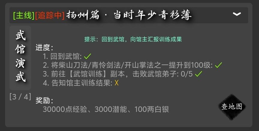向下向左,前往【武馆训练】副本,击败5个武馆弟子