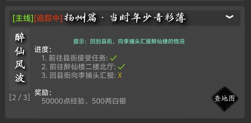 前往醉仙楼二楼北厅对话右下角制止汉子