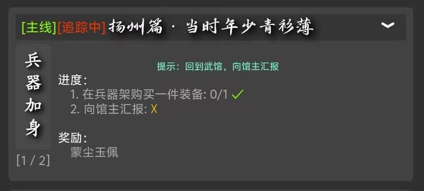 前往铁匠铺,在兵器架购买一件镔铁护腕
