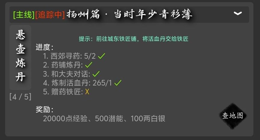 前往城东铁匠铺,将活血丹交给铁匠老王