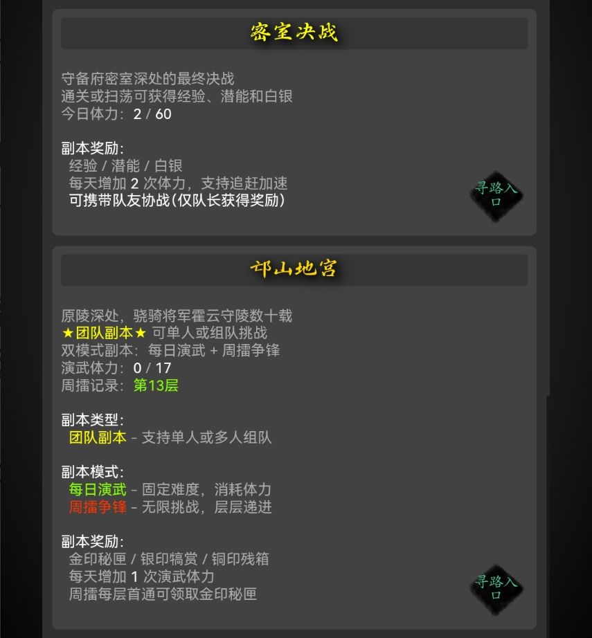 江湖生涯从非一朝一夕之功,日常历练是固本培元的根基,副本挑战是突破瓶颈的捷径。每日里,师门委托、江湖缉凶、采集炼丹等琐事,看似平凡却能积攒内力、锤炼招式;而那些藏于深山古刹、地宫秘境的副本,藏着神兵秘籍与机关险阵,需对应方案方能攻克。今日便与你细说这两路进阶之道,助你稳步成长。