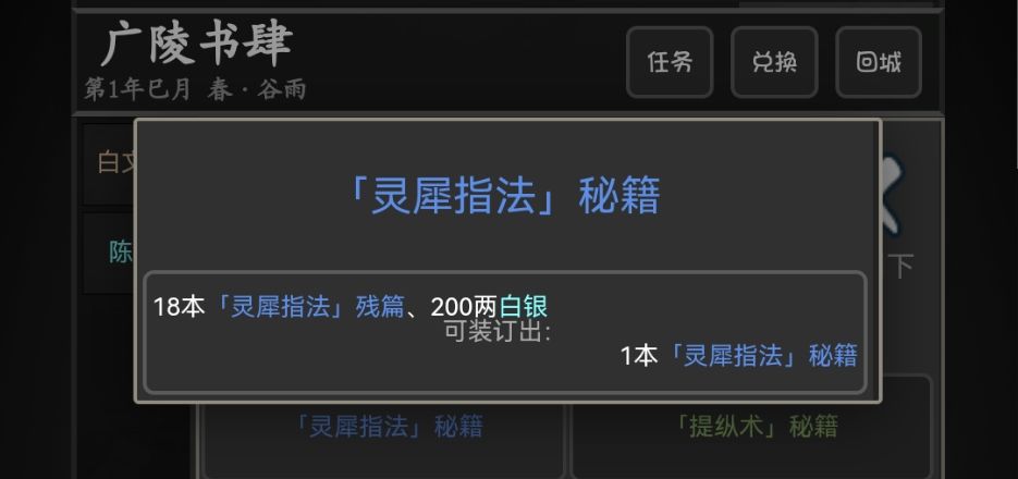 6本提纵术秘籍残篇 500两白银合成秘籍