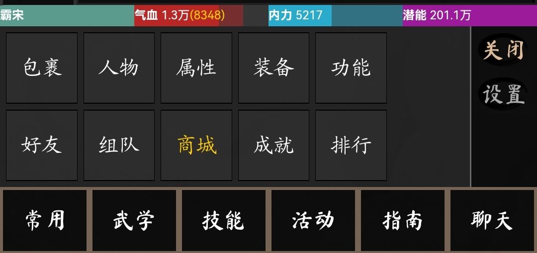 界面下方 姓名 气血 内力