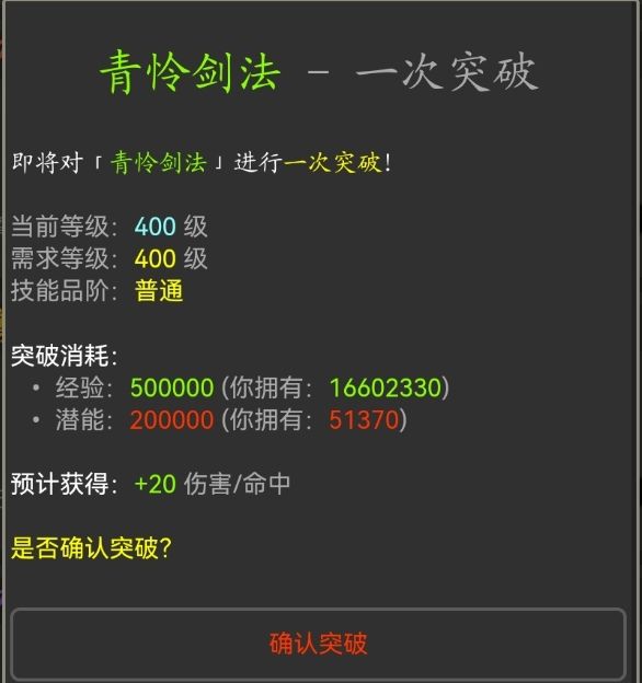 并且突破成功后增加永久面板属性