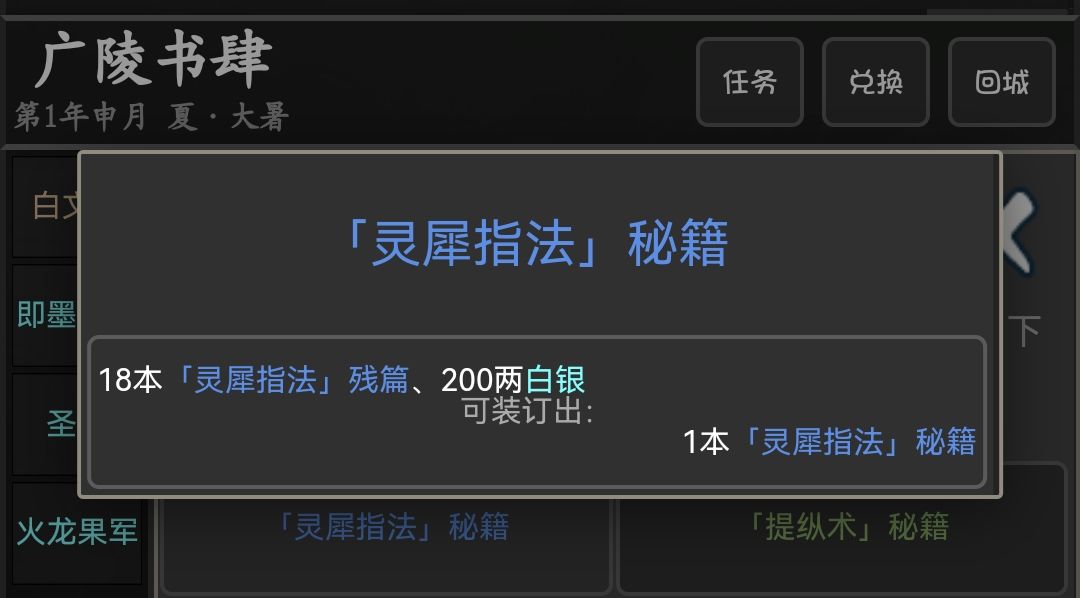 18本灵犀指法秘籍残篇+200两白银装订秘籍