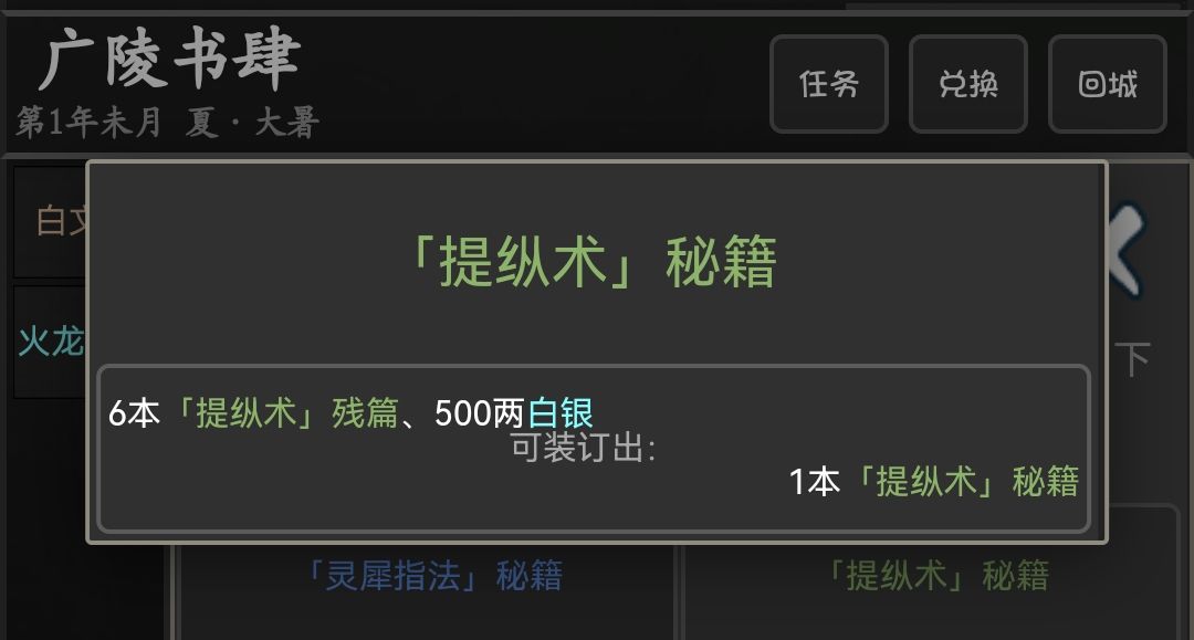 通关副本[武馆训练]可获得提纵术秘籍残篇