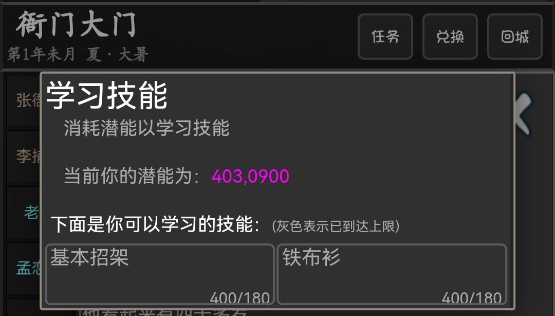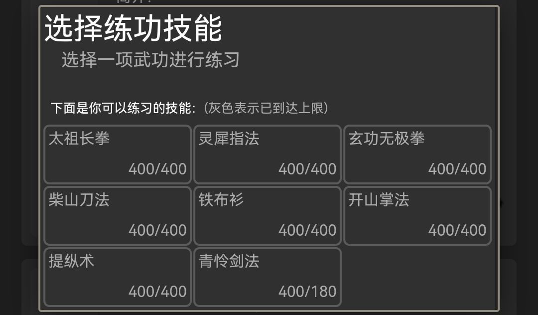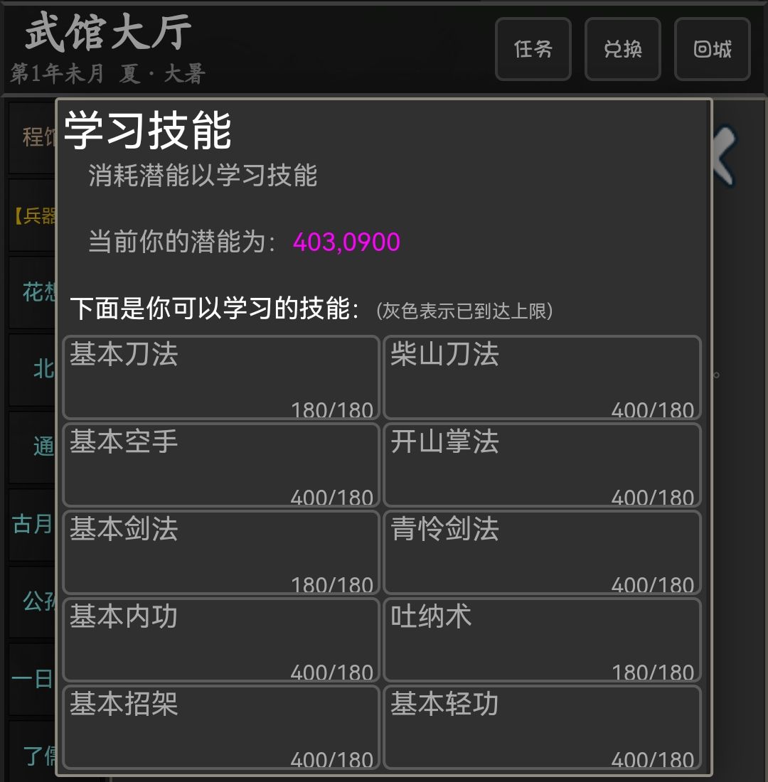 选择剑法,基本拳法也要拉满,基本刀法180级