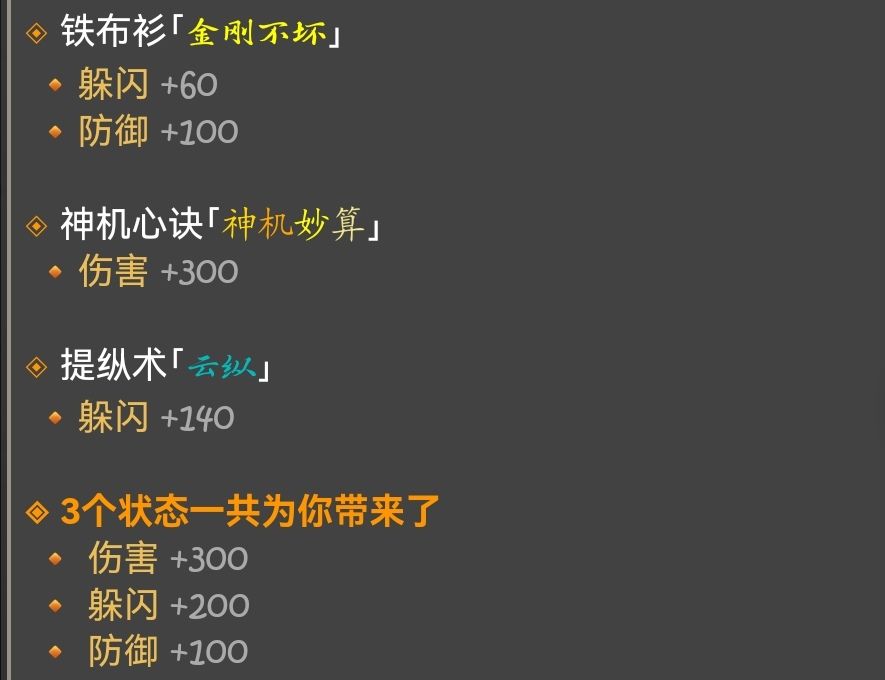使用技能-金刚不坏 可获得永久buff提高100防御属性和闪躲属性